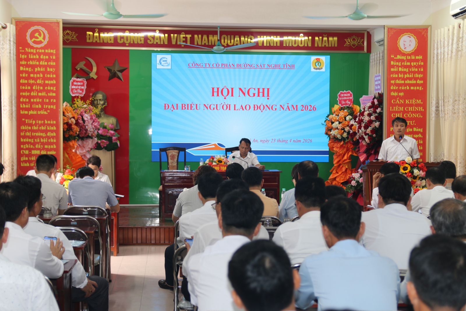 Ngày 23/4/2026, Công ty CP đường sắt Nghệ Tĩnh tổ chức Hội nghị Người lao động năm 2026 nhằm đánh giá kết quả thực hiện nhiệm vụ năm 2025, đồng thời đề ra phương hướng, giải pháp thực hiện kế hoạch năm 2026.