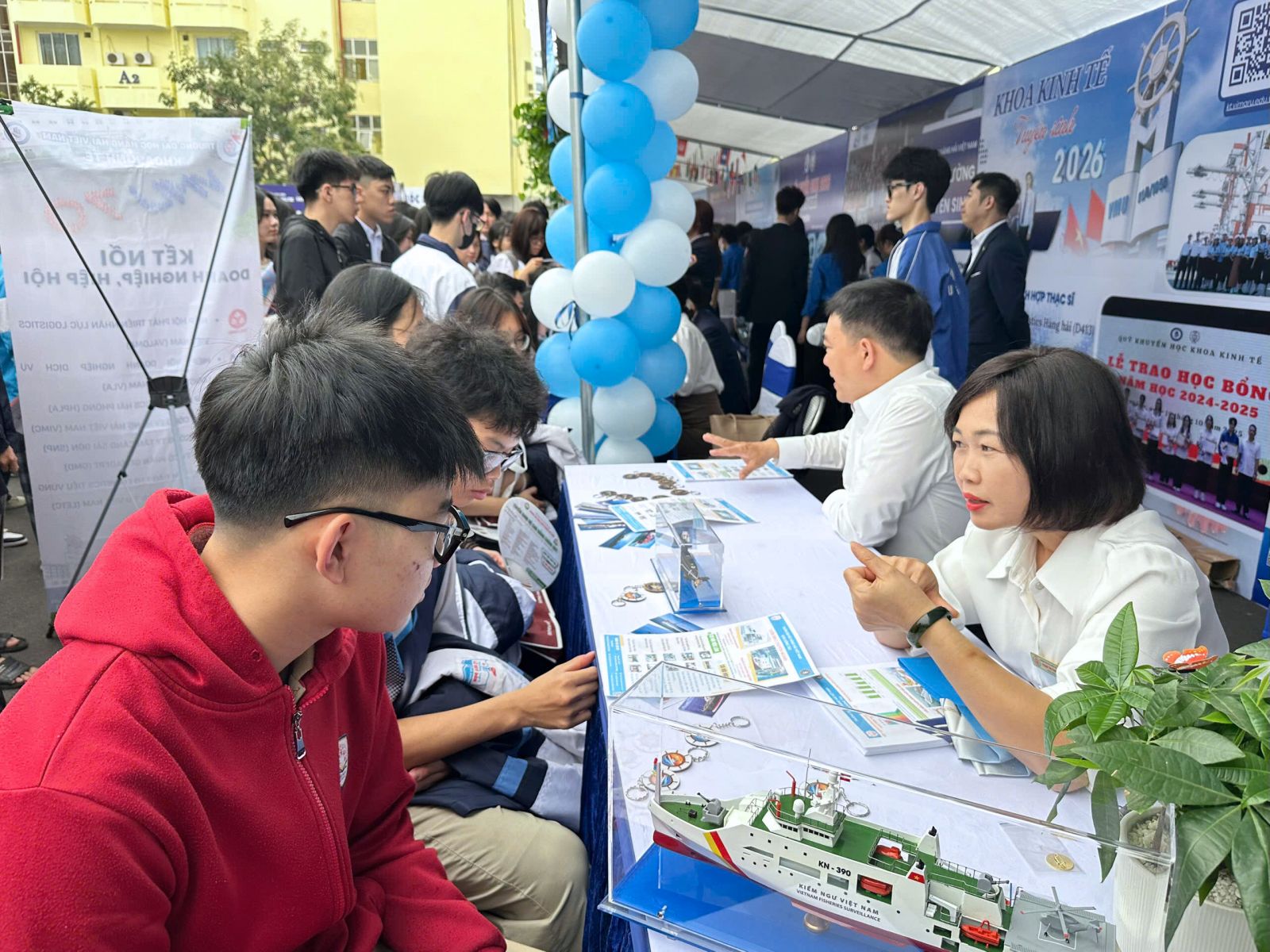 Ngày hội Tư vấn tuyển sinh - hướng nghiệp năm 2026, Trường Đại học Hàng hải Việt Nam đã huy động hàng chục xe ô tô đưa đón hơn 1.100 học sinh thuộc các trường THPT đến tham dự Ngày hội. Cùng với đó, Nhà trường tổ chức các tour tham quan khuôn viên bằng xe điện, giúp học sinh trực tiếp trải nghiệm môi trường học tập, nghiên cứu tại Trường.