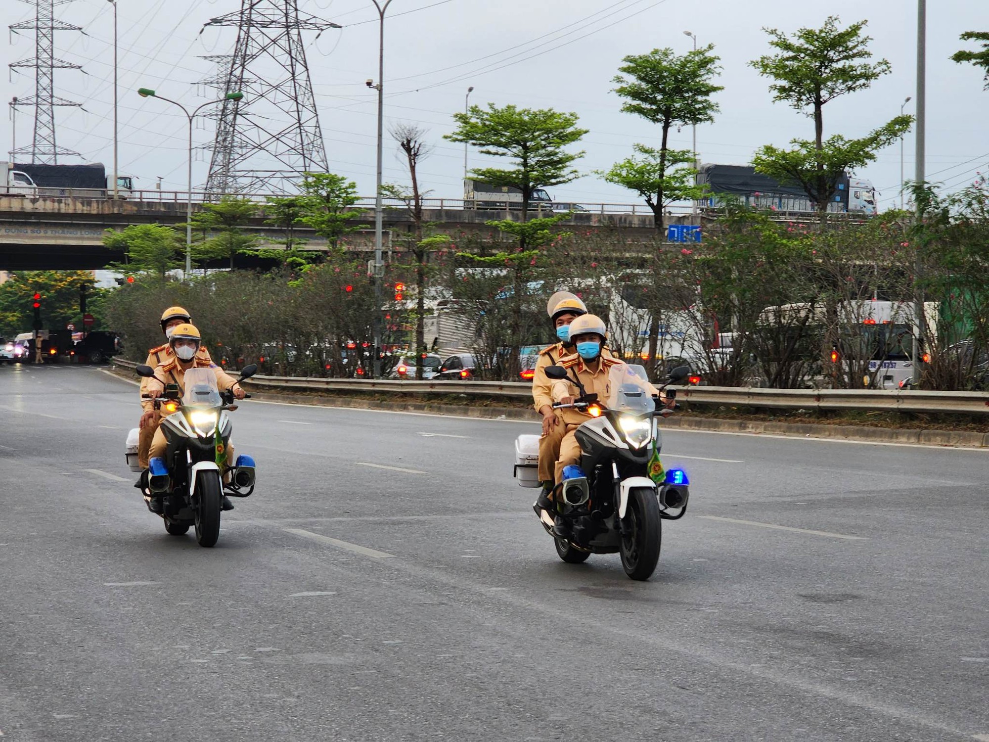 Về tình hình ùn tắc giao thông, Cục CSGT (Bộ Công an) phối hợp với lực lượng CSGT Công an TP Hà Nội sử dụng thiết bị bay không người lái (Flycam) tại khu vực cửa ngõ thành phố Hà Nội (nút giao Pháp Vân - Vành đai 3; nút giao Đại lộ Thăng Long - Khuất Duy Tiến - Trần Duy Hưng; nút giao Nguyễn Trãi - Khuất Duy Tiến - Nguyễn Xiển; nút giao Cổ Linh - Cao tốc Hà Nội - Hải Phòng; nút giao Cầu Phù Đổng - QL5 - Cầu Thanh Trì).