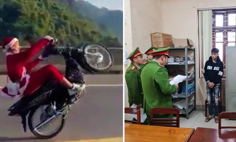 Hình ảnh thanh niên mặc quần áo ông già noel bốc đầu xe máy tại tỉnh Thái Nguyên và hình ảnh đôi vợ chồng đi xe máy "làm xiếc" trên đèo Hải Vân, TP Đà Nẵng
