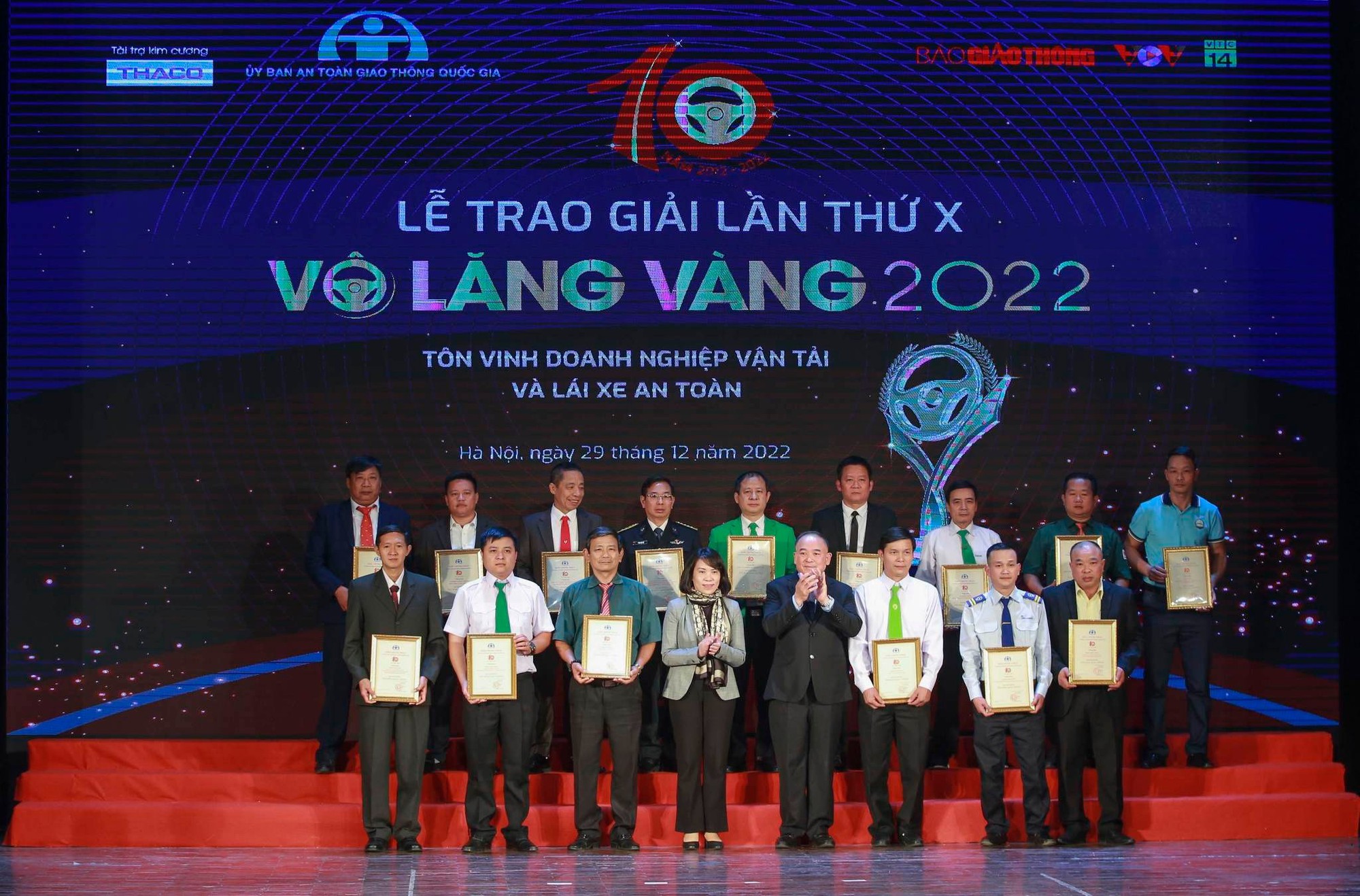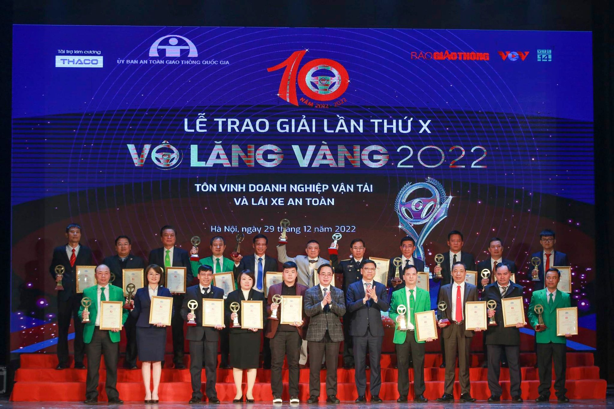Ở giải thưởng "Vô lăng vàng" lần thứ 10 năm 2022, Văn phòng Uỷ ban ATGT Quốc gia đã nhận được hồ sơ tham dự của 32 đơn vị kinh doanh vận tải và 161 lái xe. Hội đồng bình xét đã lựa chọn được 20 tập thể đạt giải "Vô lăng vàng" dành cho doanh nghiệp, 50 cá nhân đạt giải "Vô lăng vàng" dành cho lái xe, 05 tập thể đạt giải "Văn hóa giao thông", 10 cá nhân đạt giải "Văn hóa giao thông".