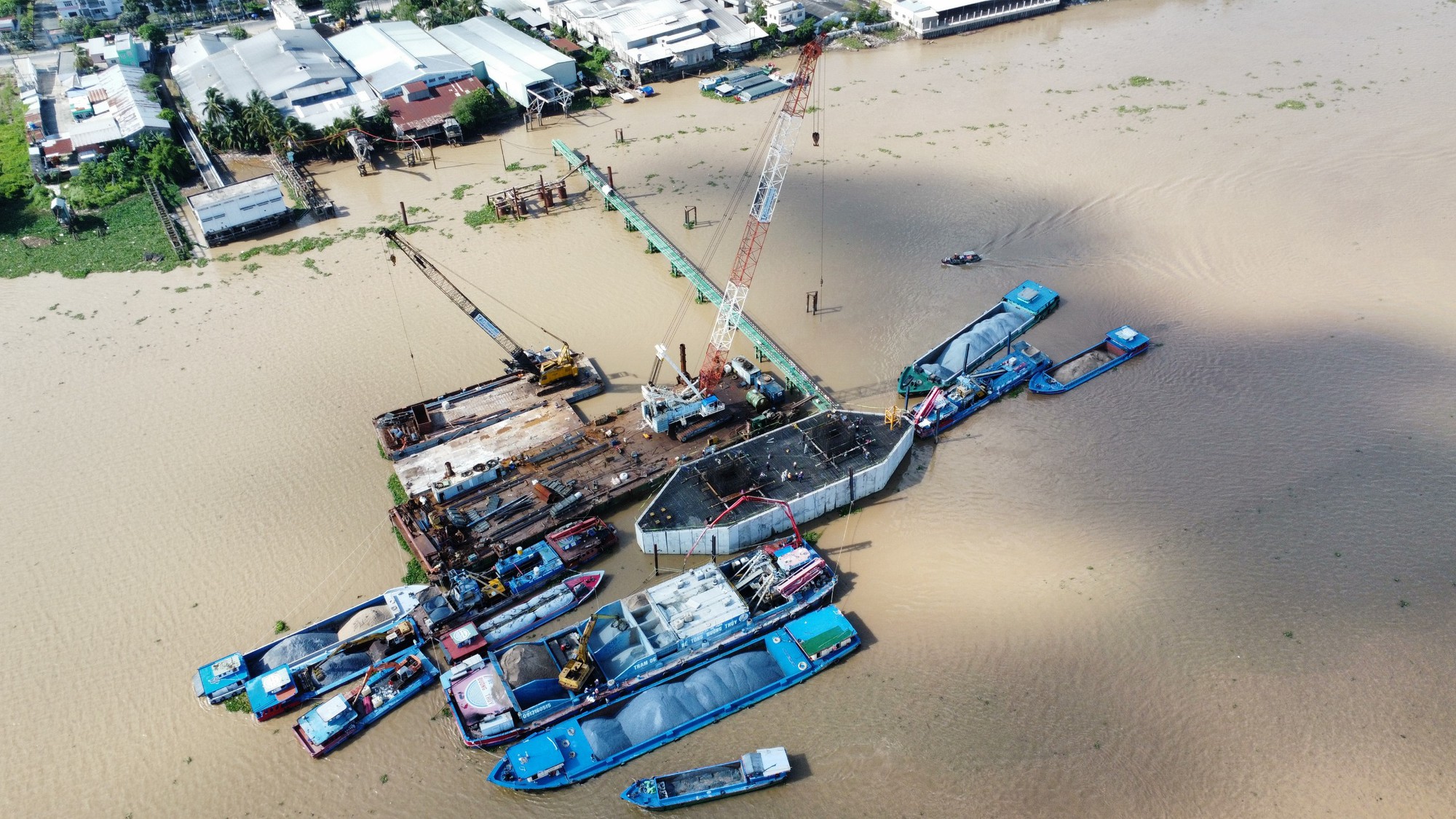 Chia sẻ về quá trình thi công tại dự án, ông Cao Văn Giáp, Chỉ huy trưởng trụ P19 (Tập đoàn Thuận An) cho biết: "Dù gặp rất nhiều khó khăn về mặt bằng chưa được bàn giao, không có đường cấp vật liệu, di chuyển từ bờ ra trụ tháp, nhà thầu phải huy động sà lan hệ nổi, sông Tiền có lưu vực lớn, thủy triều lên xuống thất thường trong khi thiết kế cốt thấp,… nhưng hàng trăm công nhân, kỹ sư của Tập đoàn Thuận An vẫn làm việc 3 ca 4 kíp không ngừng nghỉ suốt ngày đêm để đẩy nhanh tiến độ".