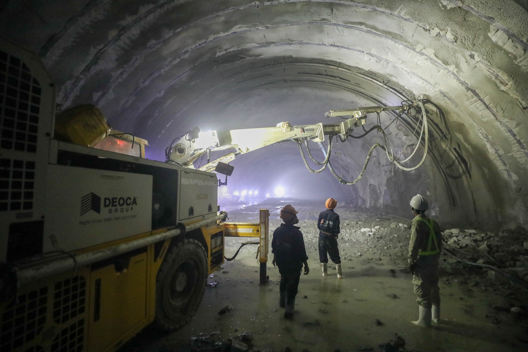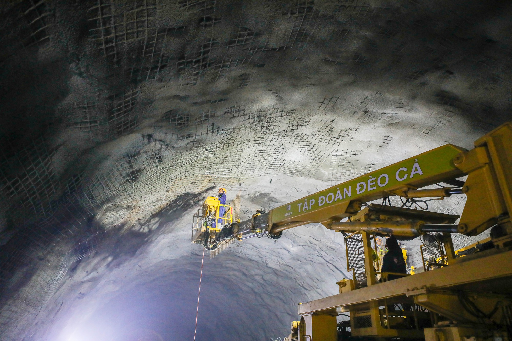 Ông Đặng Tiến Thắng cho biết, để thi công hầm Núi Vung, Tập đoàn Đèo Cả đã đầu tư 6 thiết bị khoan mới. "Các mũi thi công chia nhau khoan núi 3 ca liên tục ngày đêm. Trung bình mỗi ngày các tổ thi công khoan được 4m. Đến nay, Tập đoàn Đèo Cả đã khoan được 1.200m chiều dài, dự kiến đến tháng 3/2023 sẽ thông hầm", ông Thắng chia sẻ.