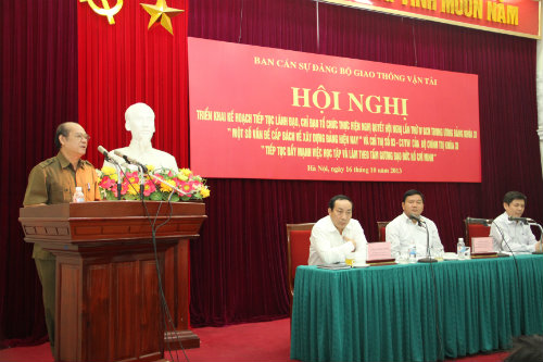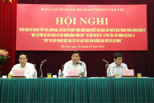 Tại hội nghị, các đại biểu đã nghe tham luận của một số đơn vị về việc lãnh đạo, chỉ đạo và tổ chức thực hiện Nghị quyết TW4 và Chỉ thị 03 của Bộ Chính trị khóa XI ở cơ sở: Phạm Hữu Sơn, Bí thư Đảng ủy, Tổng giám đốc, Ủy viên HĐTV Tổng công ty Tư vấn thiết kê GTVT; Trần Ngọc Thành, Bí thư Đảng ủy, Chủ tịch HĐTV Tổng công ty Đường sắt Việt Nam; Lại Xuân Thanh, Bí thư Đảng ủy, Cục trưởng Cục Hàng không Việt Nam; Đỗ Nga Việt, Chủ tịch Công đoàn GTVT Việt Nam; Bạch Ngọc Du, Bí thư Đảng ủy, Chủ tịch HĐTV Tổng công ty Xây dựng công trình giao thông 5; Khuất Việt Hùng, Bí thư Chi bộ, Vụ trưởng Vụ Vận tải; Trịnh Thị Hằng Nga, Bí thư Chi bộ, Vụ trưởng Vụ Pháp chế… Nhìn chung, các đơn vị đã tổ chức nghiêm túc, chặt chẽ trong việc thực hiện Nghị quyết Trung ương 4, tiến hành kiểm điểm đúng quy trình, bám sát 3 nội dung của Nghị quyết; việc thực hiện Chỉ thị 03 của Bộ Chính trị góp phần từng bước nâng cao chất lượng sinh hoạt chi bộ, năng lực lãnh đạo và sức chiến đấu của tổ chức cơ sở Đảng.