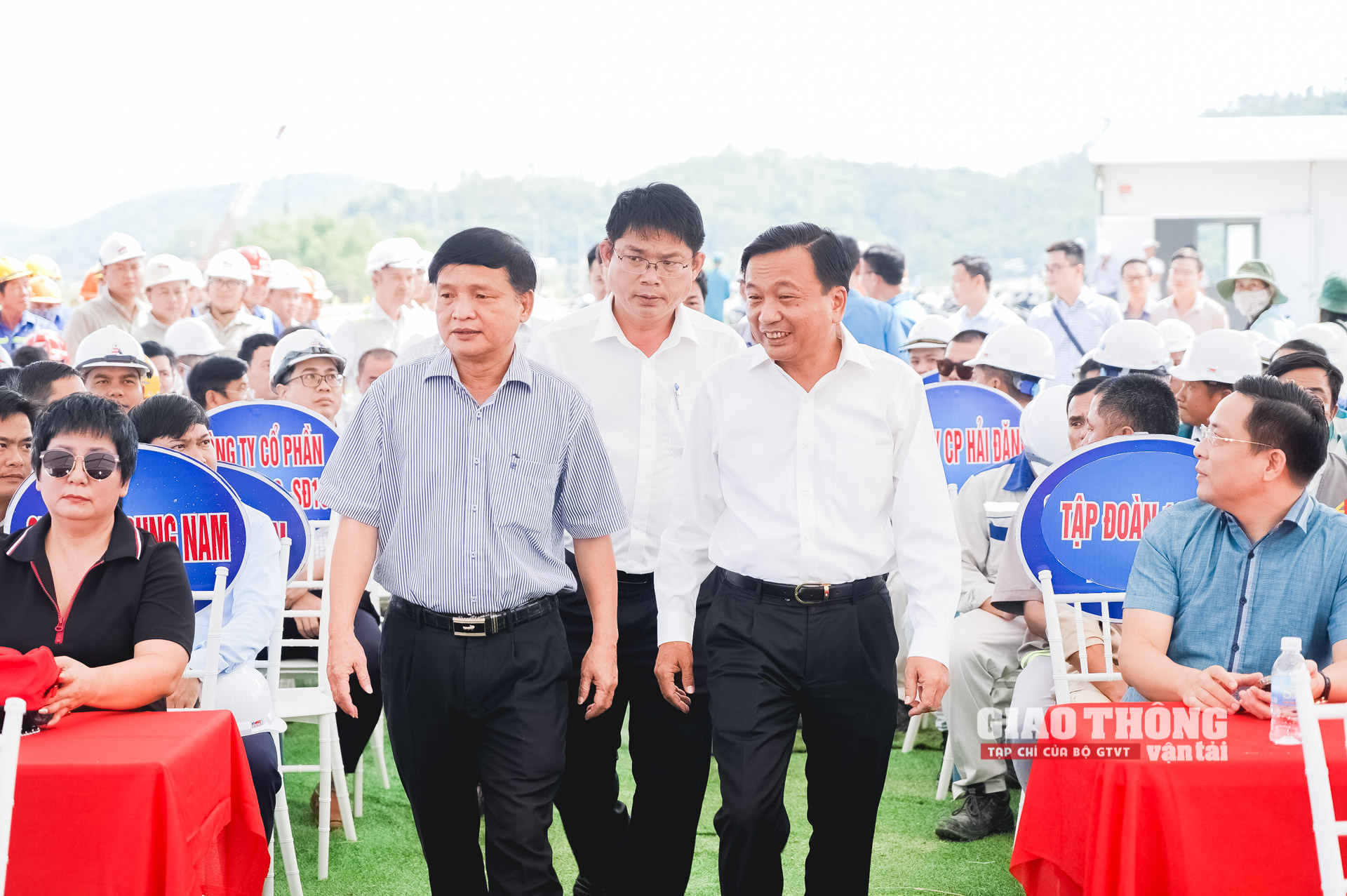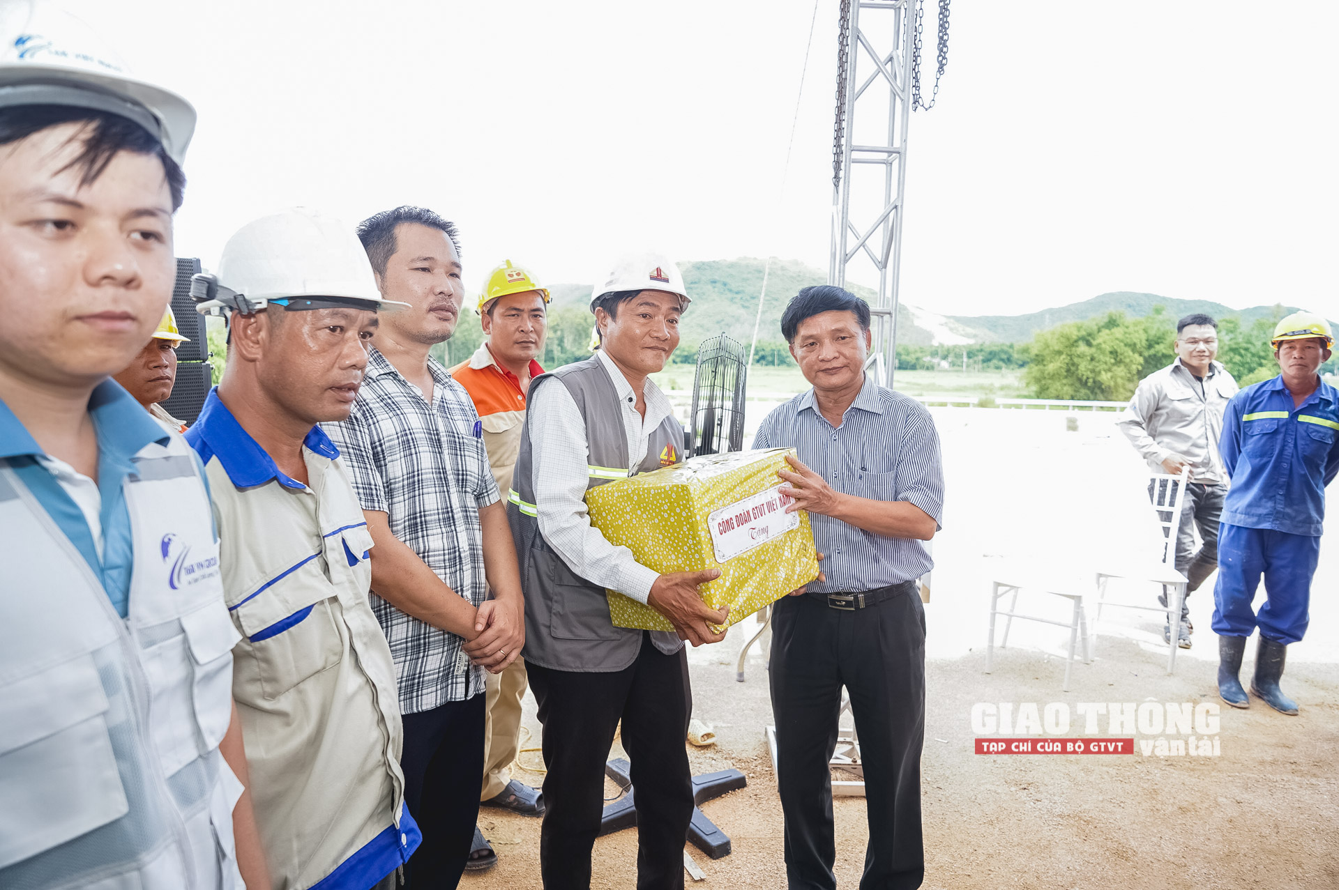 Thứ trưởng Bộ GTVT Nguyễn Danh Huy cùng ông Phạm Hoài Phương, Chủ tịch Công đoàn GTVT Việt Nam; Lãnh đạo UBND tỉnh Phú Yên; Lãnh đạo Ban QLDA 85 và ông Nguyễn Ngọc Hòa, Chủ tịch HĐQT Tập đoàn Xây dựng 168 Việt Nam, kiêm Chủ tịch Hội đồng liên danh nhà thầu trao quà cho cán bộ, kỹ sư, công nhân đang thi công trên công trường cao tốc Quy Nhơn - Chí Thạnh