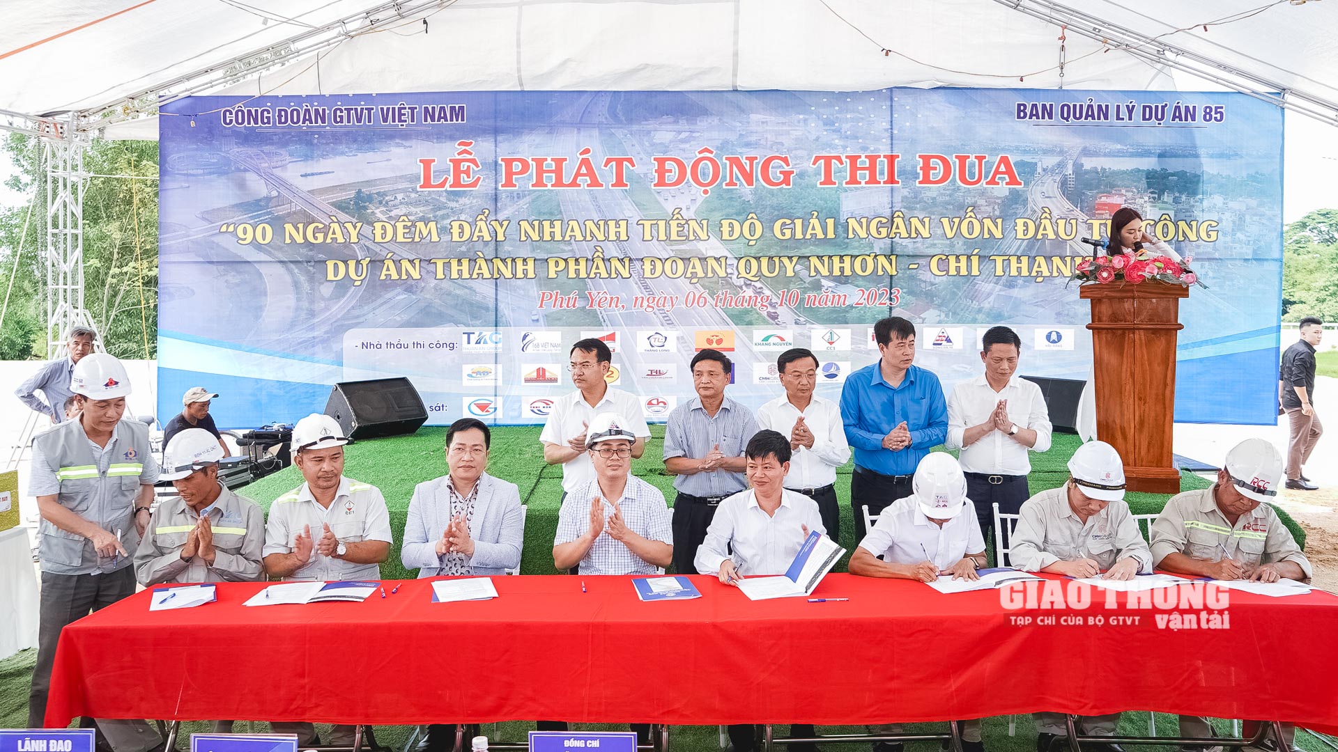 Sáng nay (6/10) tại tỉnh Phú Yên, Công đoàn GTVT Việt Nam phối hợp cùng Ban QLDA 85 (Bộ GTVT) tổ chức Lễ phát động "90 ngày đêm đẩy nhanh tiến độ giải ngân vốn đầu tư công dự án thành phần đoạn Quy Nhơn - Chí Thạnh".