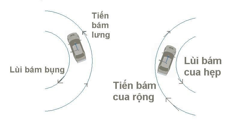 Lưu ý: Khi bạn xoay vô lăng sang trái, đầu xe sẽ hướng sang phải và ngược lại. Luôn đi đủ chậm để có thể kiểm tra đầu xe.