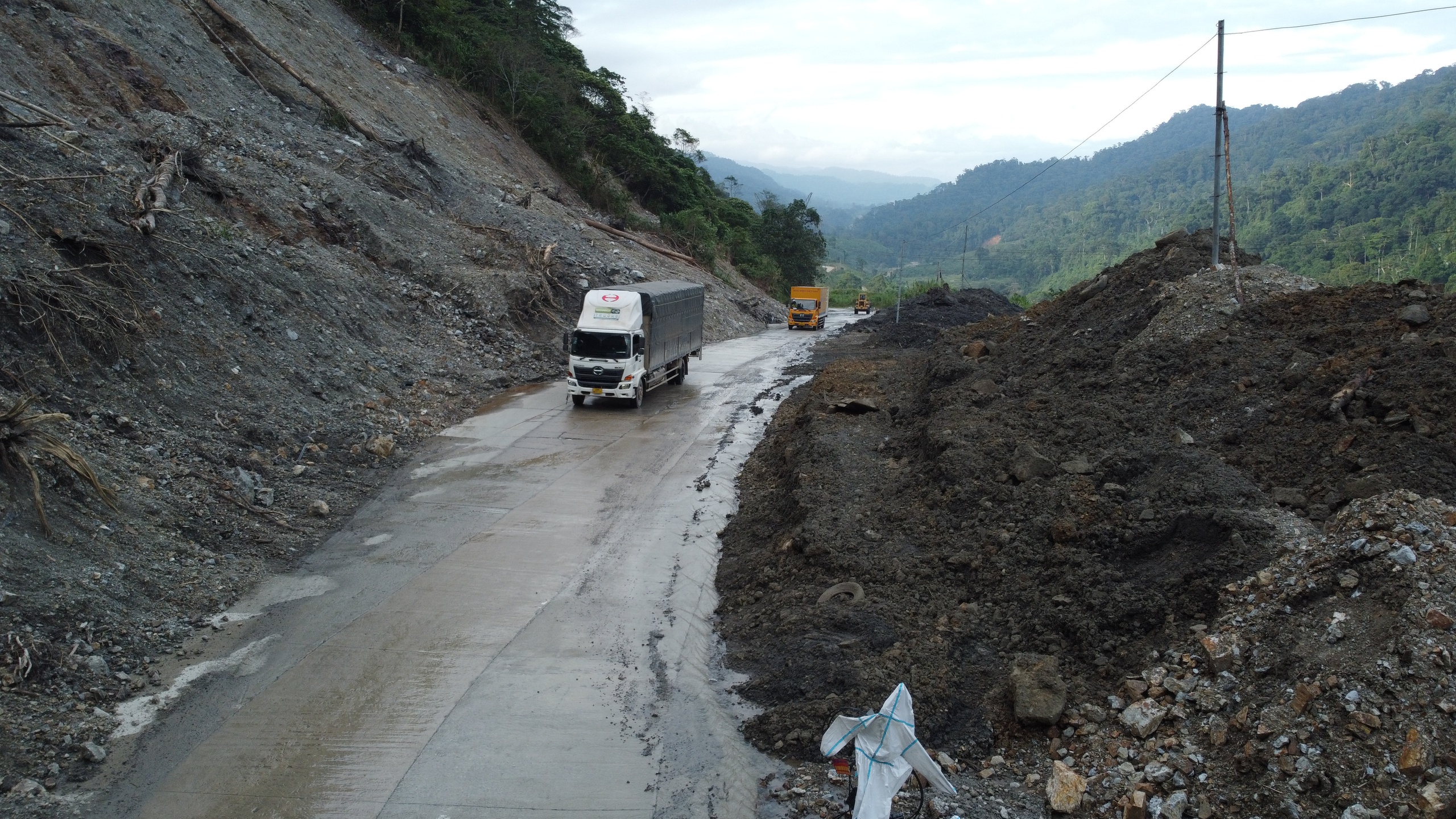 Thông xe tại điểm sạt lở Km1409 đường Hồ Chí Minh qua đèo Lò Xo nối Đà Nẵng (Quảng Nam cũ) và Quảng Ngãi (Kon Tum cũ).
