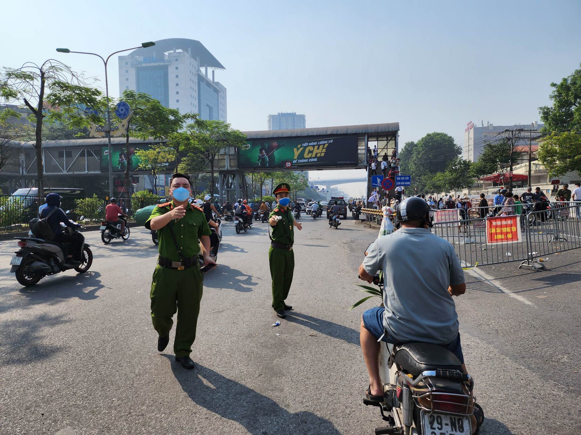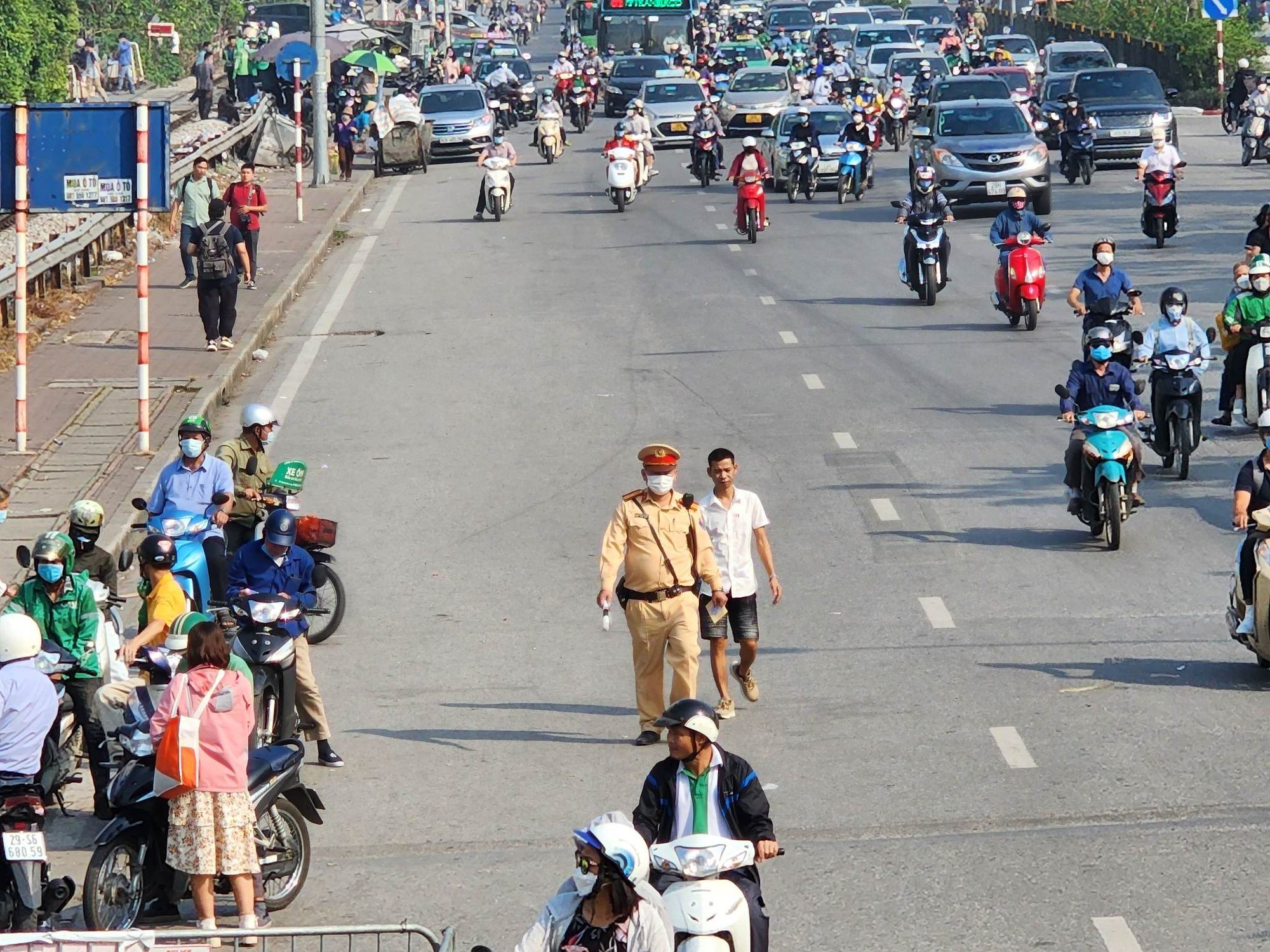 Một số hình ảnh Cảnh sát 113 quận Hai Bà Trưng và Đội CSGT đường bộ số 4 (Hà Nội) xử lý vi phạm giao thông trên đường Giải Phóng, trước cổng Bệnh viện Bạch Mai