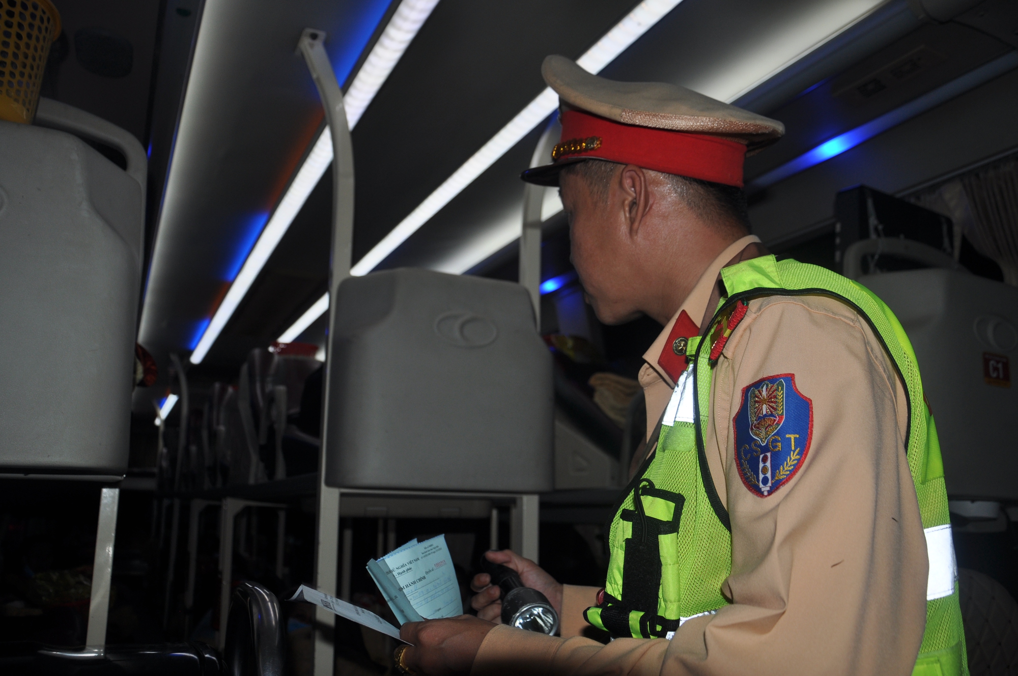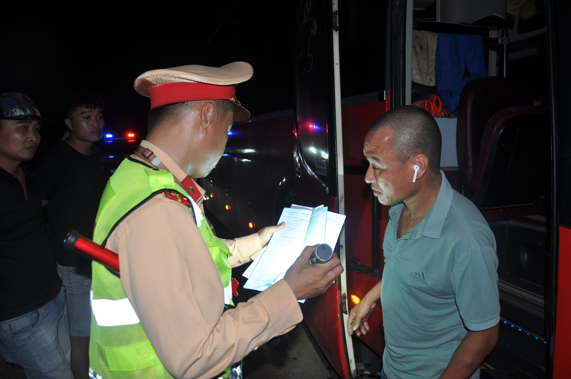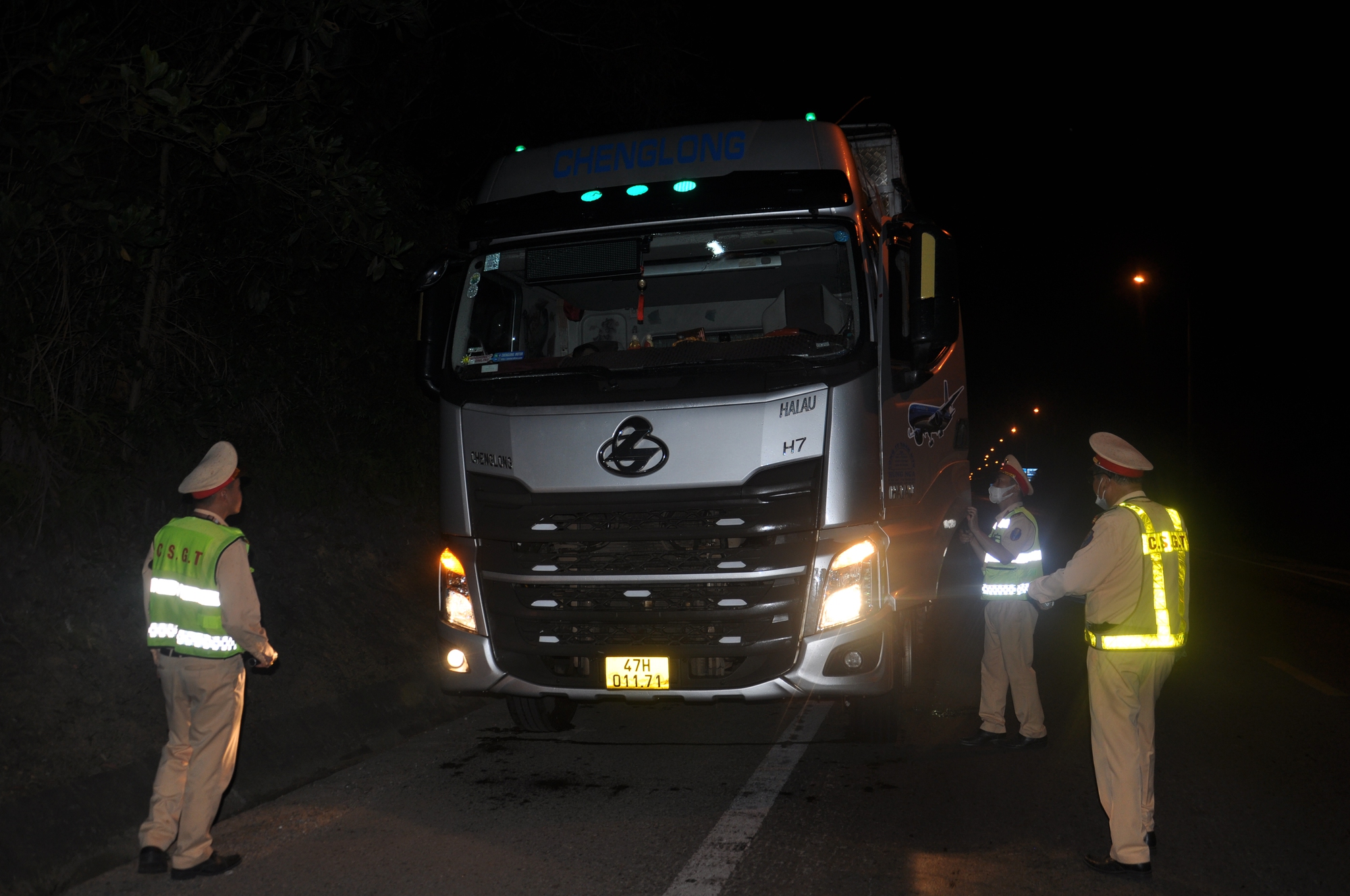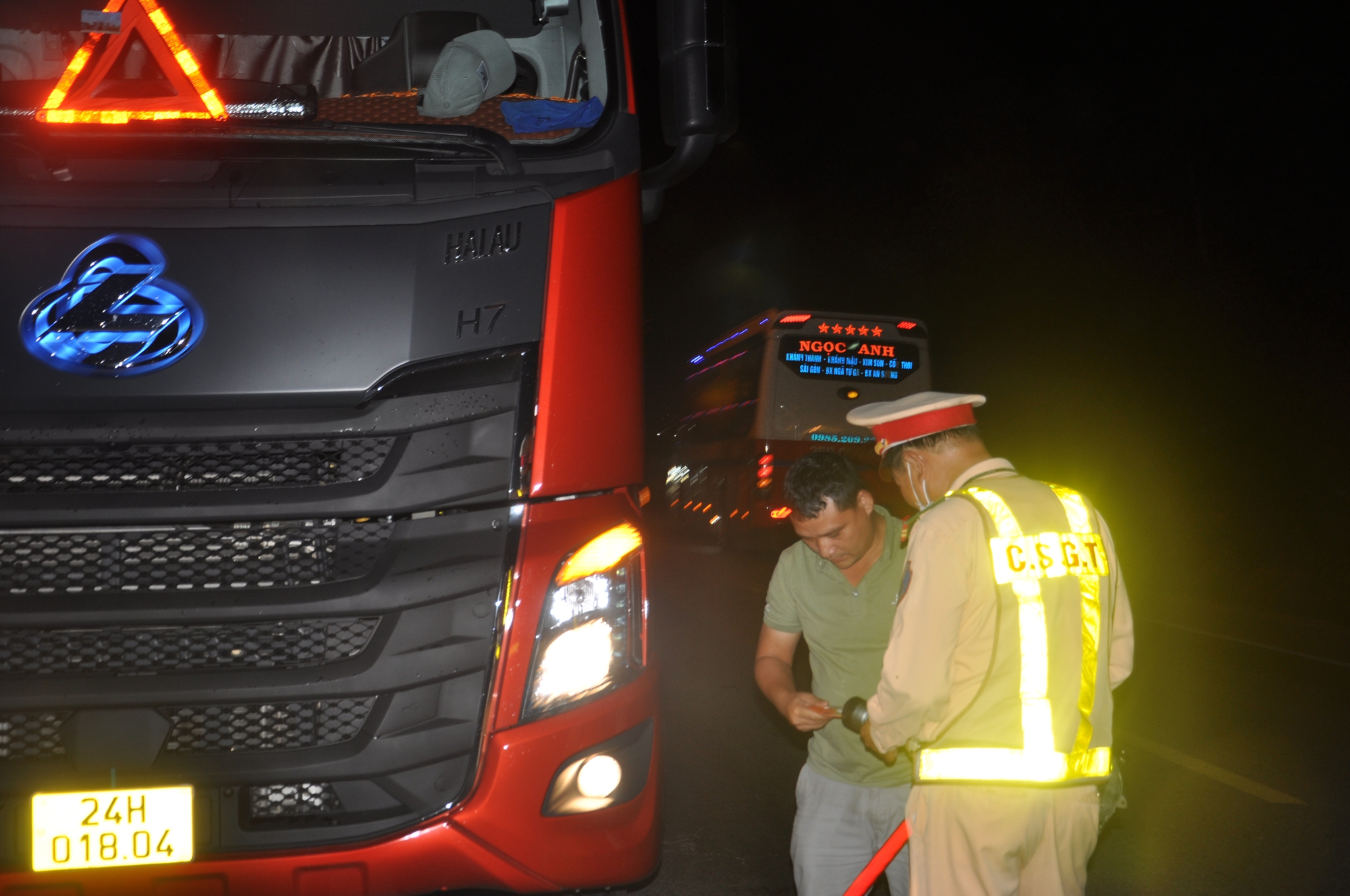 Trước đó, theo chân tổ công tác Trạm CSGT cửa ô Hòa Nhơn và Trạm CSGT cửa ô Hòa Hiệp, PV cũng ghi nhận lực lượng CSGT TTKS xuyên đêm đảm bảo TTATGT, kiểm soát xe khách, container trên tuyến đường Hải Vân-Túy Loan (tuyến tránh QL1).