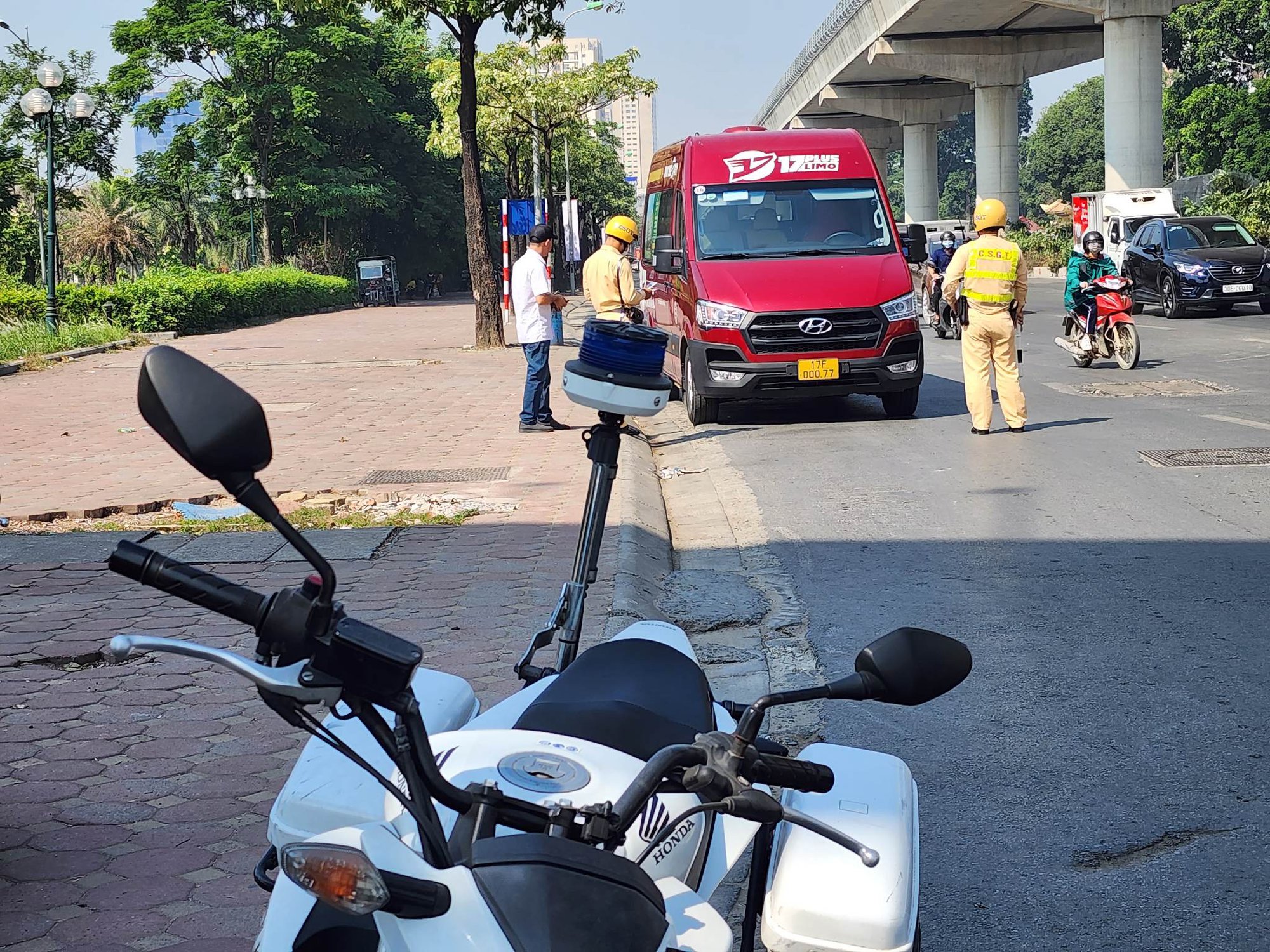 Chỉ ít phút sau, tại khu vực ngã tư Hồ Tùng Mậu - Trần Vỹ, tổ công tác tiếp tục ghi hình một xe ôtô hợp đồng Limousine BKS 17F-003.xx do tài xế Phạm Quang H (SN 1985, ở huyện Kiến Xương, tỉnh Thái Bình) điều khiển cũng vi phạm dừng, đỗ. Ngay sau khi dừng xe, tài xế H. đã rút điện thoại gọi "cứu viện" nhưng bất thành và buộc phải ký vào biên bản vi phạm.