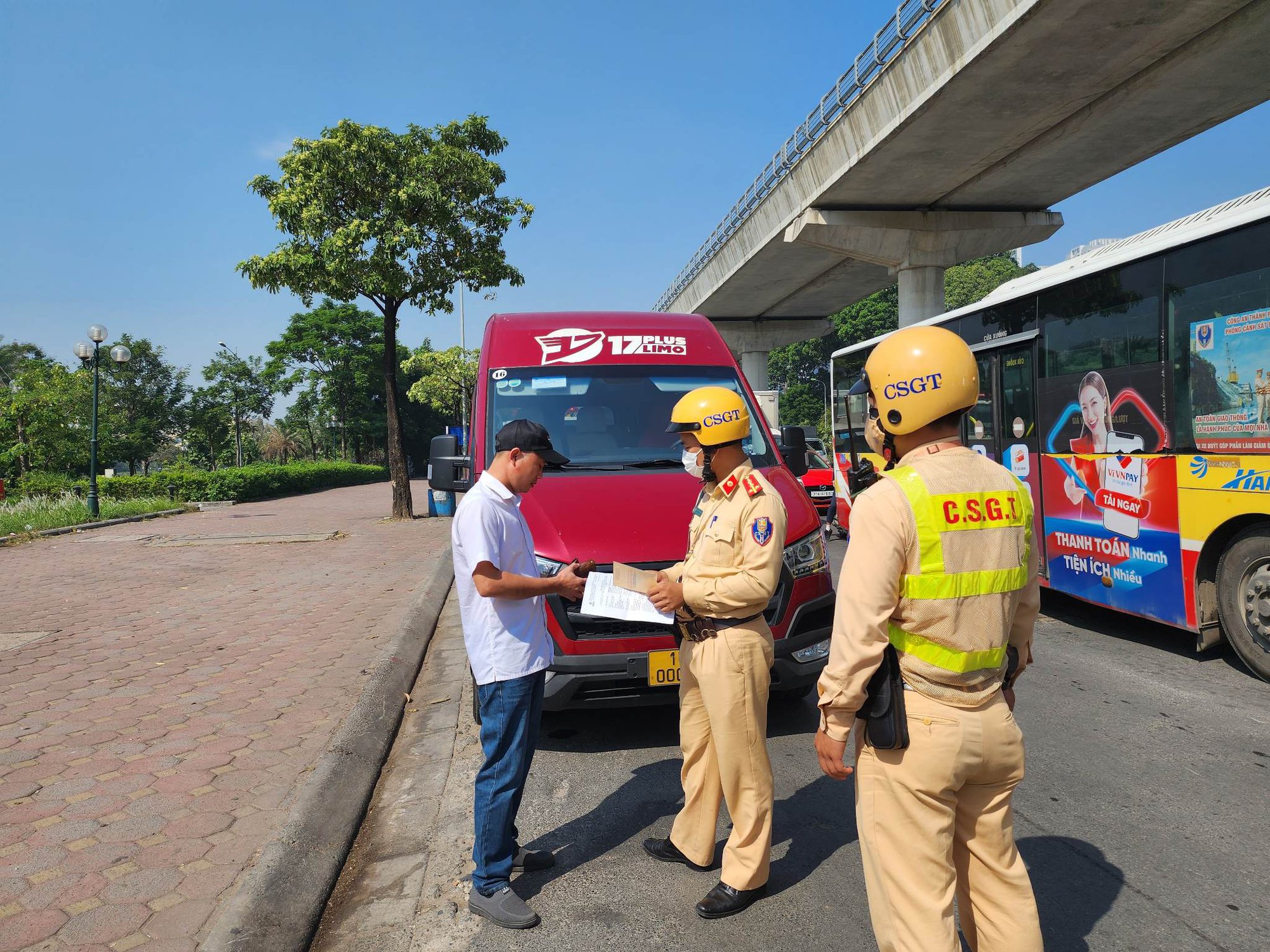 Ngay sau khi quay video ghi hình ôtô 36B-021.xx đang dừng, đỗ trên đường Hồ Tùng Mậu, CSGT yêu cầu tài xế xuất trình GPLX và giấy tờ liên quan đến phương tiện. Theo đó, xác định người điều khiển ô tô khách 36B-021.xx là anh Trần Văn T. (sinh năm 1979, ở huyện Hậu Lộc, tỉnh Thanh Hoá). Anh T. không biết mình vi phạm lỗi gì, sau khi được CSGT cho xem lại video, anh T. đã "tâm phục, khẩu phục".