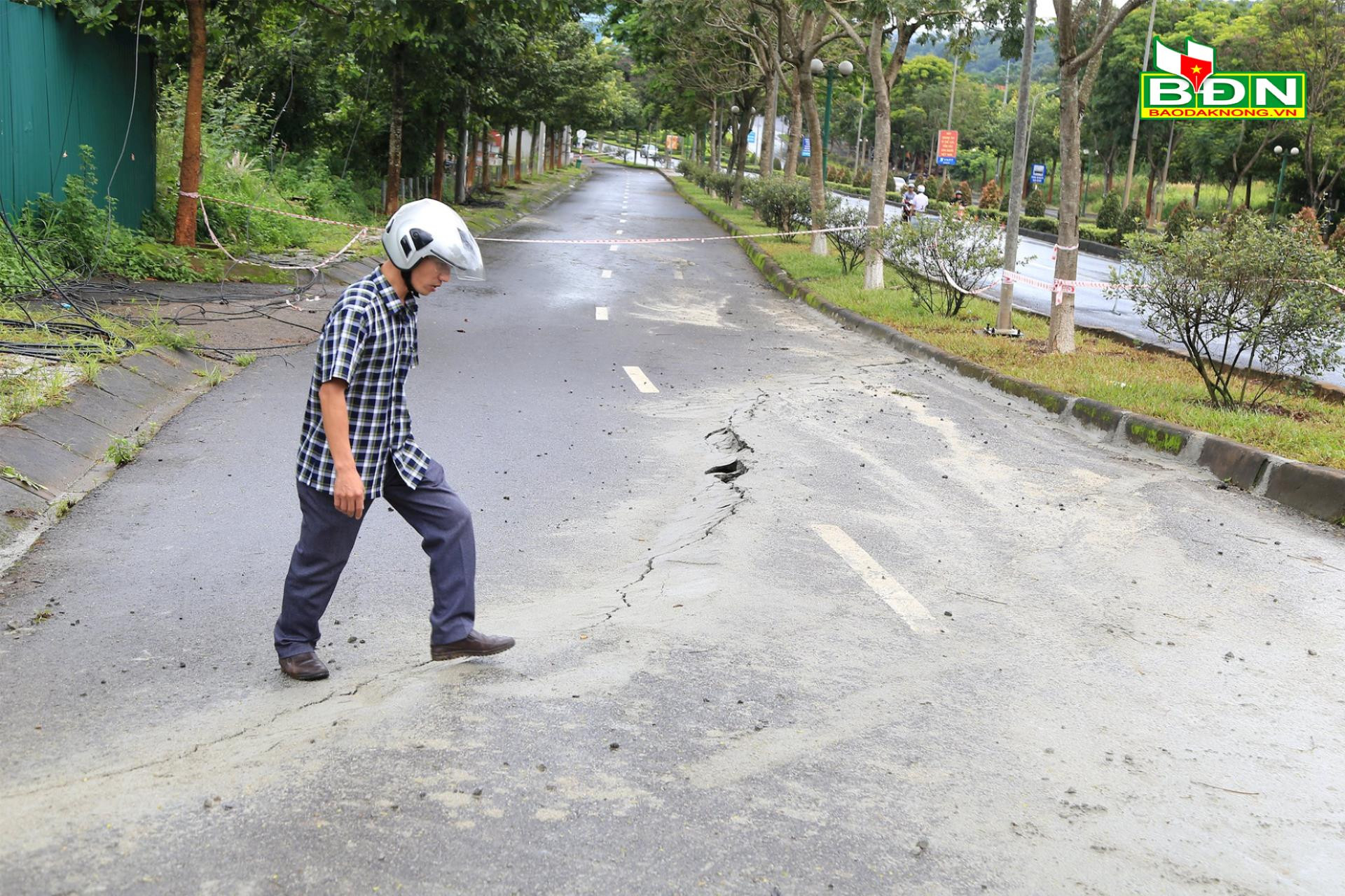 Quan sát hiện trường cho thấy, vết sụt trượt mở rộng từ 0,2-0,7m; độ cao chệnh lệch đứt gãy mặt đường vị trí lớn nhất gần 1m. Mặt đường làn đường gom đứt gãy hoàn hoàn. Chiều dài sụt trượt kéo dài hơn 200m. Đáng lo, vết sụt trượt liên tục mở rộng, phát triển vào tim đường. Hiện mưa to vẫn tiếp tục diễn ra trên địa bàn TP. Gia Nghĩa và toàn địa bàn tỉnh Đắk Nông.