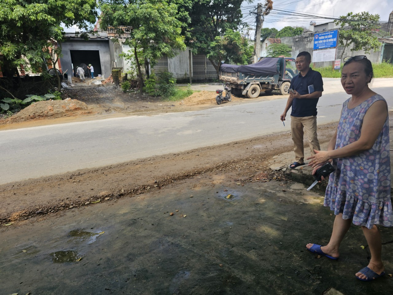 Công trình "Sửa chữa hư hỏng nền, mặt đường và thoát nước đoạn Km87+680–Km87+852 và đoạn Km88+364-Km89+700, Quốc lộ 37, tỉnh Hải Dương" không tuân thủ theo phương án đảm bảo ATGT được phê duyệt, tập kết chất thải ngay trên đường thi công, gây ô nhiễm môi trường và sử dụng chất thải thi công để đổ vào nhà dân nằm ven Quốc lộ 37 đoạn trên đường Nguyễn Thái Học (ảnh cuối)