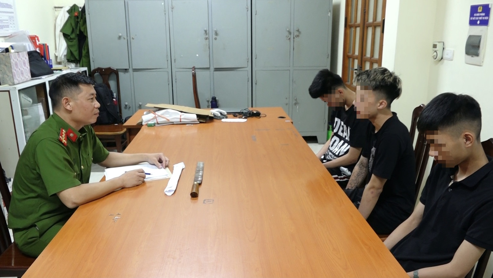 Công an xác định Nguyễn Đức Thành (18 tuổi) là đối tượng có trong nhóm trên. Sau đó, cơ quan chức năng đã mời Thành, Trịnh Xuân Sơn (17 tuổi) cùng nhiều đối tượng khác tới trụ sở.