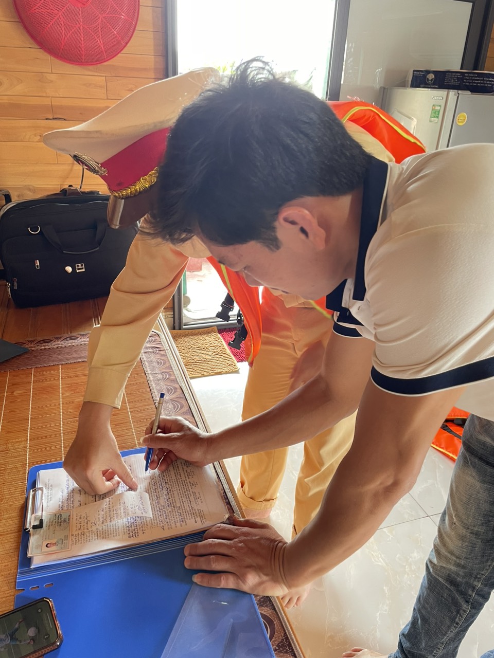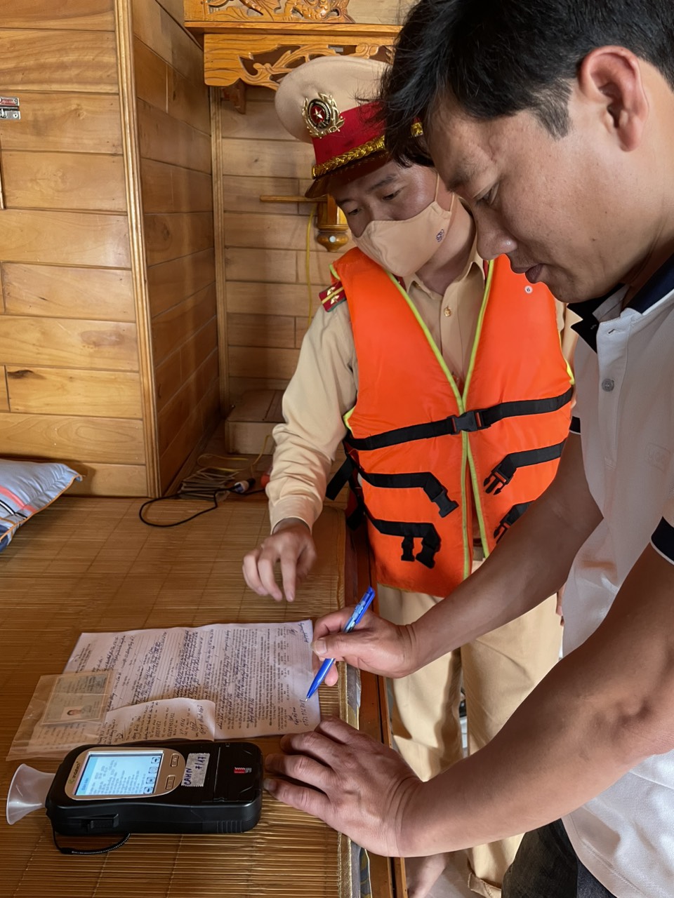 Qua kiểm tra đo nồng độ cồn với lái tàu, tổ công tác ghi nhận người này vi phạm ở mức 0,321 miligram/lít khí thở. Lái tàu Đ.Đ.H thừa nhận, khi ăn sáng "có làm vài chén rượu" và nghĩ rằng trên sông nước không có chuyện kiểm tra nồng độ cồn.