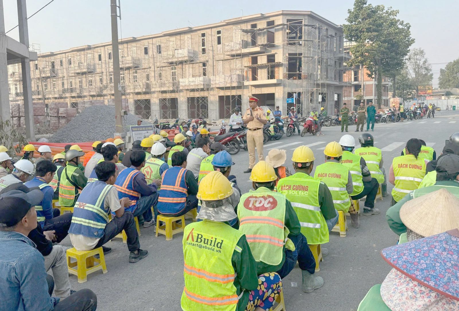 Đối với công nhân các KCN, lực lượng CSGT phối hợp với Công an phường, Ban quản lý, Công đoàn cơ sở tổ chức các buổi sinh hoạt chuyên đề, phát tờ rơi, chiếu video tình huống thực tế, hướng dẫn kỹ năng xử lý khi tham gia giao thông, nhấn mạnh thông điệp “đi làm an toàn - về nhà bình yên”. Nội dung tuyên truyền được thiết kế ngắn gọn, dễ hiểu, sát thực tế đời sống của người lao động; đặc biệt chú trọng các quy tắc và kỹ năng tham gia giao thông an toàn.