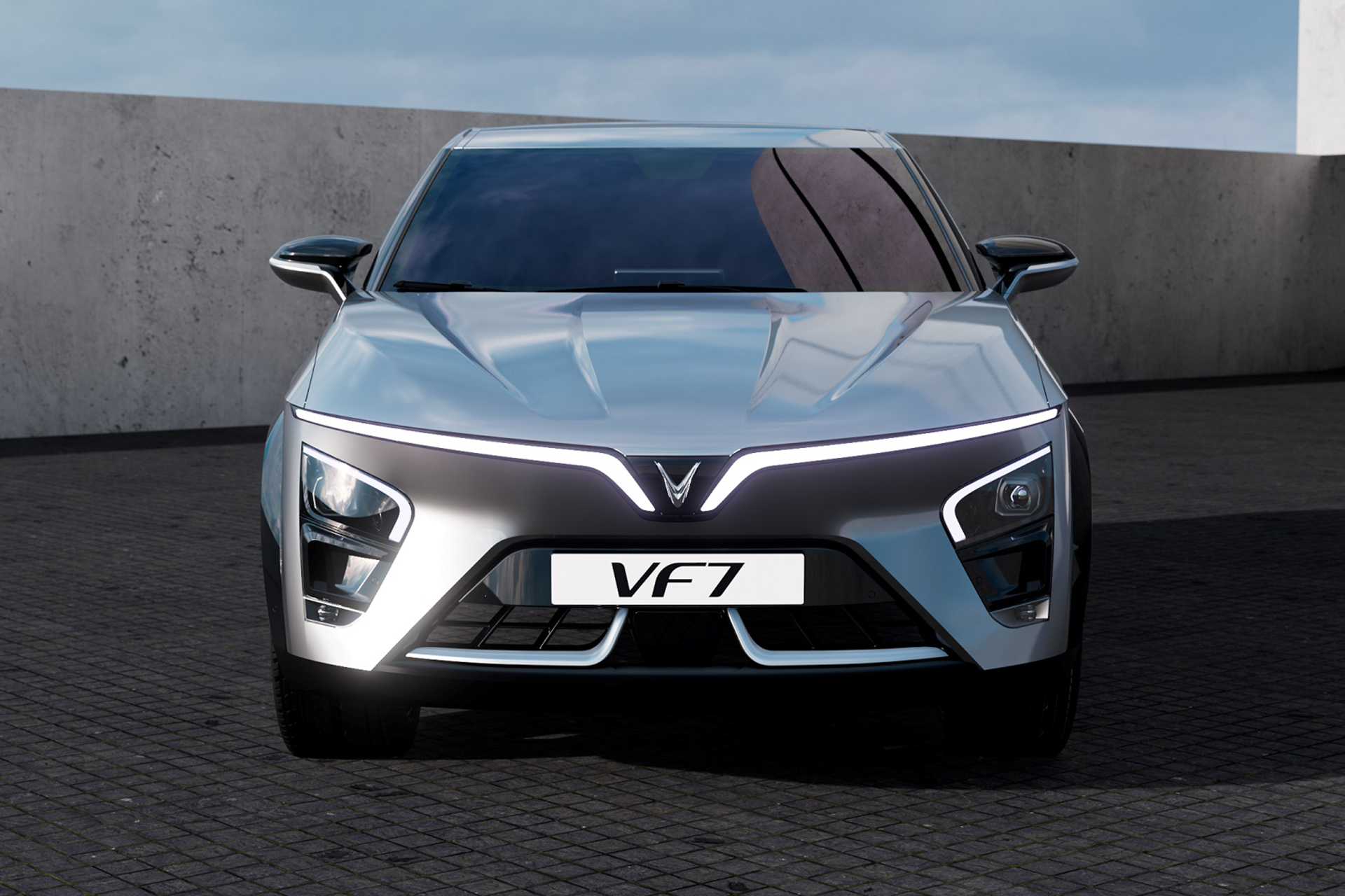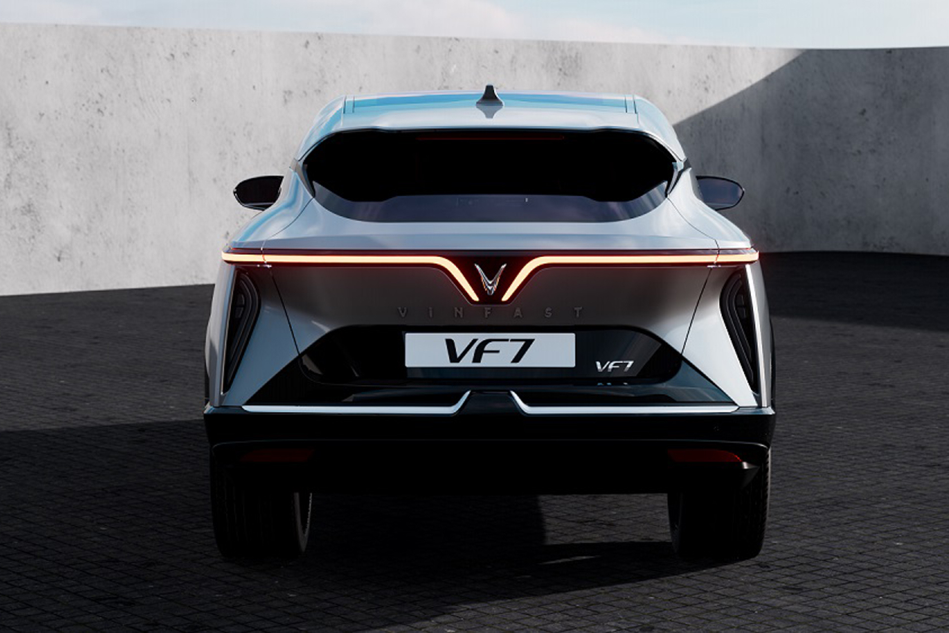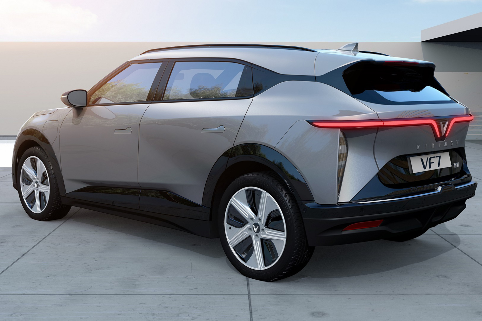 "Đàn anh" VinFast VF 7 có thiết kế khá lạ mắt và mới mẻ. Mui xe vuốt thấp mang đến vẻ đẹp thể thao khỏe khoắn cùng các đường nét táo bạo ở đuôi xe với cụm đèn LED hình cánh chim phóng khoáng. Cụm đèn trước mang dấu ấn VinFast với hiệu ứng LED độc đáo.