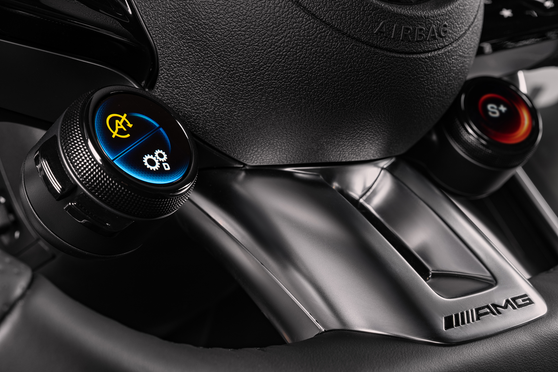 Không gian nội thất của C 43 AMG đảm bảo sự sang trọng và thoải mái. Vô-lăng 3 chấu thể thao AMG Performance bọc da nappa cao cấp với logo Mercedes-Benz và dòng chữ AMG thiết kế độc quyền, phần dưới bằng phẳng và có lỗ thông gió ở phần tay cầm. Điểm nhấn khác biệt trên cụm vô-lăng là hai nút tròn nổi bật phát sáng giúp người lái dễ dàng lựa chọn chính xác và điểu khiển nhanh chóng các chế độ lái.