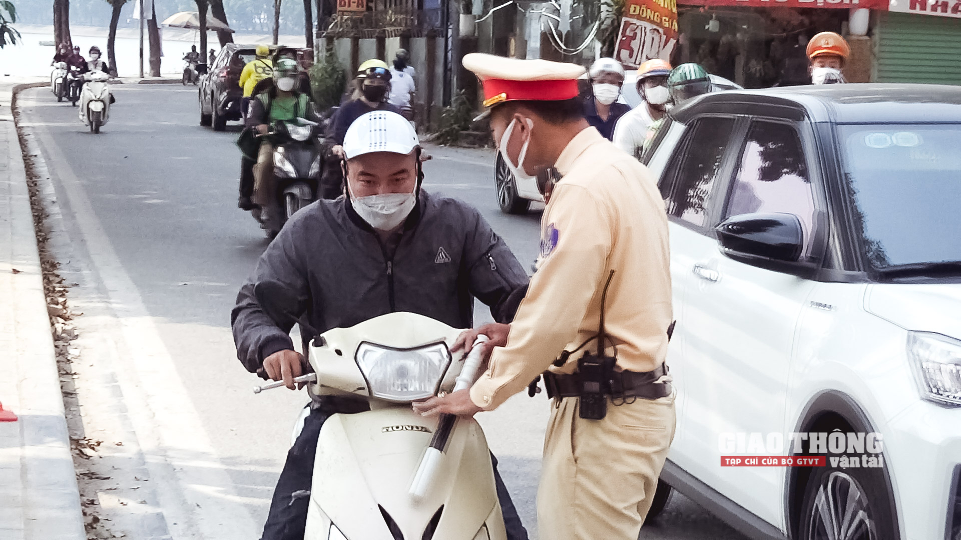 Chỉ ít phút sau khi lập chốt, CSGT tiến hành dừng, kiểm tra hàng chục phương tiện