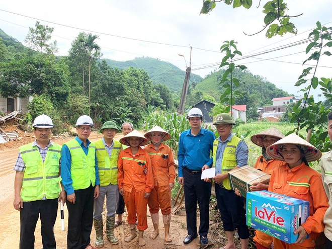 Cũng trong chuyến công tác, Chủ tịch Công đoàn GTVT Việt Nam Phạm Hoài Phương tới thăm hỏi, động viên, trao tiền hỗ trợ của Quỹ Từ thiện Công đoàn GTVT Việt Nam tới các tập thể, cá nhân thuộc Cục Đường bộ VN thường trực công tác đảm bảo ATGT, khắc phục hậu quả do cơn bão số 3 trên địa bàn hai tỉnh Yên Bái, Lào Cai.