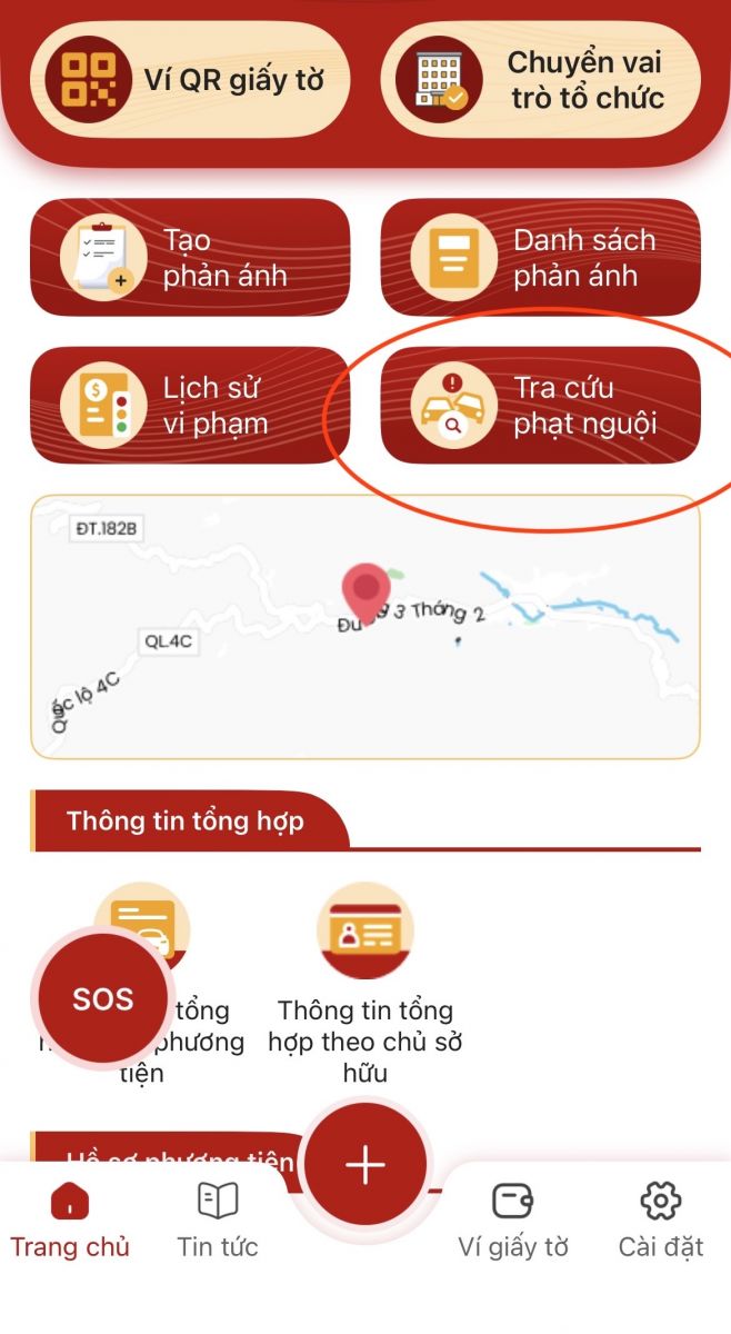 Bước 1: Ở giao diện ứng dụng, chọn mục “Tra cứu phạt nguội”
