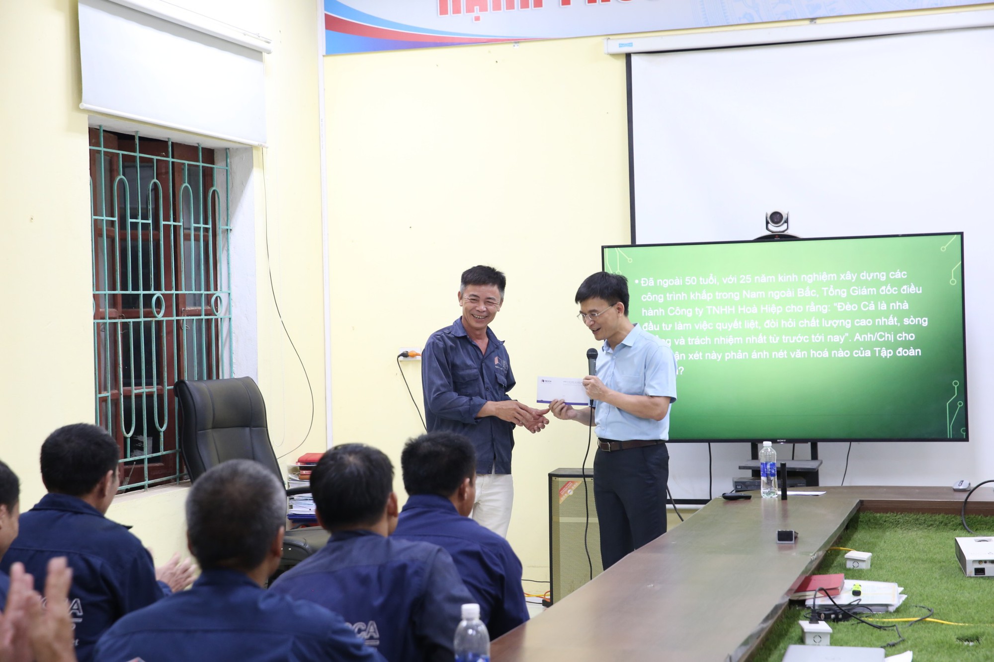 Ông Trần Văn Toản - Chỉ huy trưởng công trình hầm Thung Thi chia sẻ: "Buổi đào tạo thực sự bổ ích cho chúng tôi, qua buổi đào tạo tôi đã học tập, lắng nghe và hiểu đúng hơn những đặc trưng văn hoá Đèo Cả, biết được những giá trị Tập đoàn mang lại cho mình".