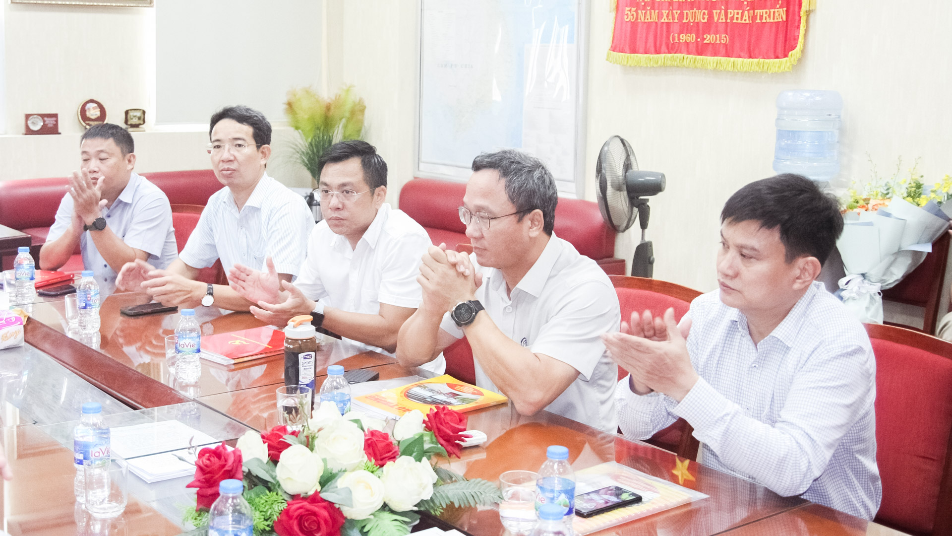 Đồng chí Khuất Việt Hùng, Ủy viên Ban Cán sự Đảng, Ủy viên Ban Thường vụ, Trưởng Ban Tuyên giáo Đảng ủy Bộ GTVT tặng hoa tân Bí thư Chi bộ Tạp chí GTVT Nguyễn Văn Hường