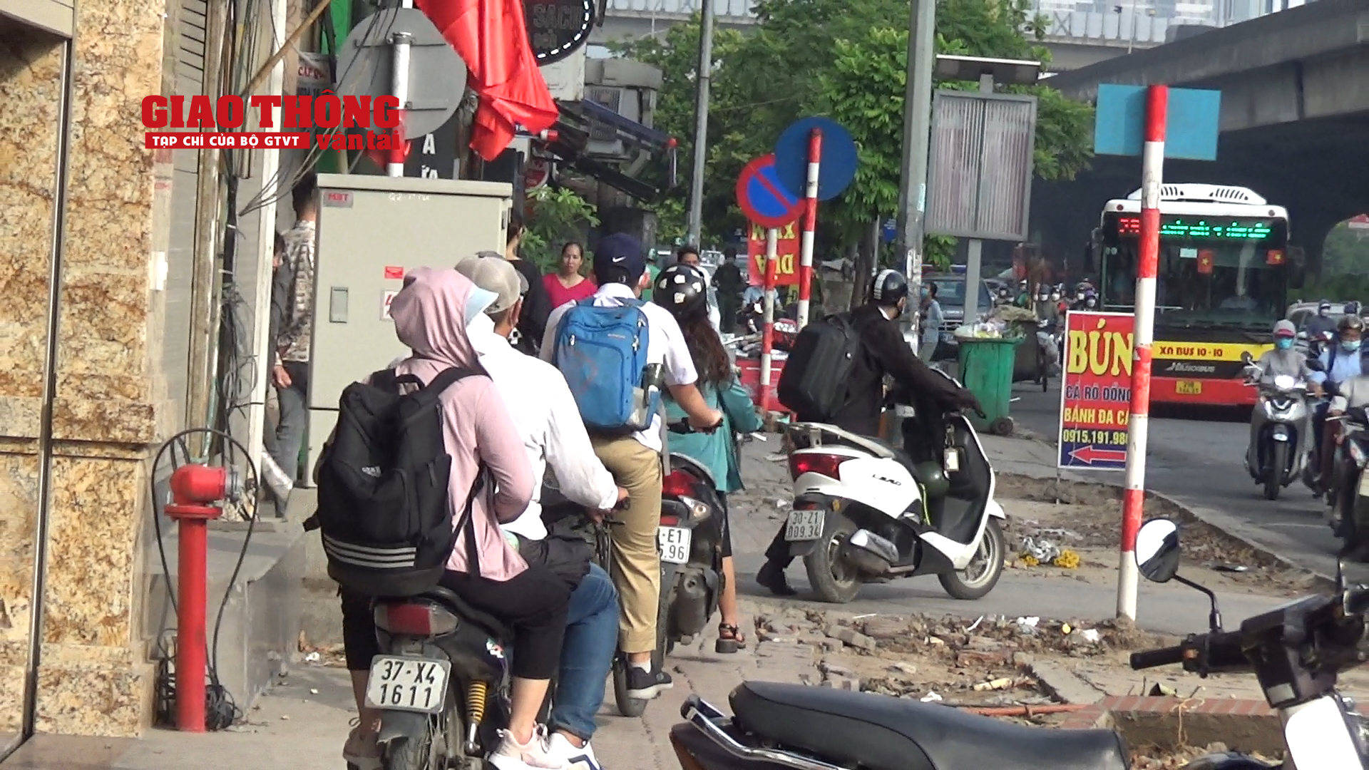 Trao đổi với PV, Đại uý Nguyễn Duy Đạt, Tổ trưởng tổ công tác Đội CSGT đường bộ số 7 (Phòng CSGT Công an TP Hà Nội) thông tin, khu vực nút giao thông Nguyễn Trãi - Nguyễn Xiển luôn có lưu lương phương tiện đông, nhất là vào giờ cao điểm, xuất hiện tình trạng người điều khiển xe máy đi xe trên hè phố, đi ngược chiều.