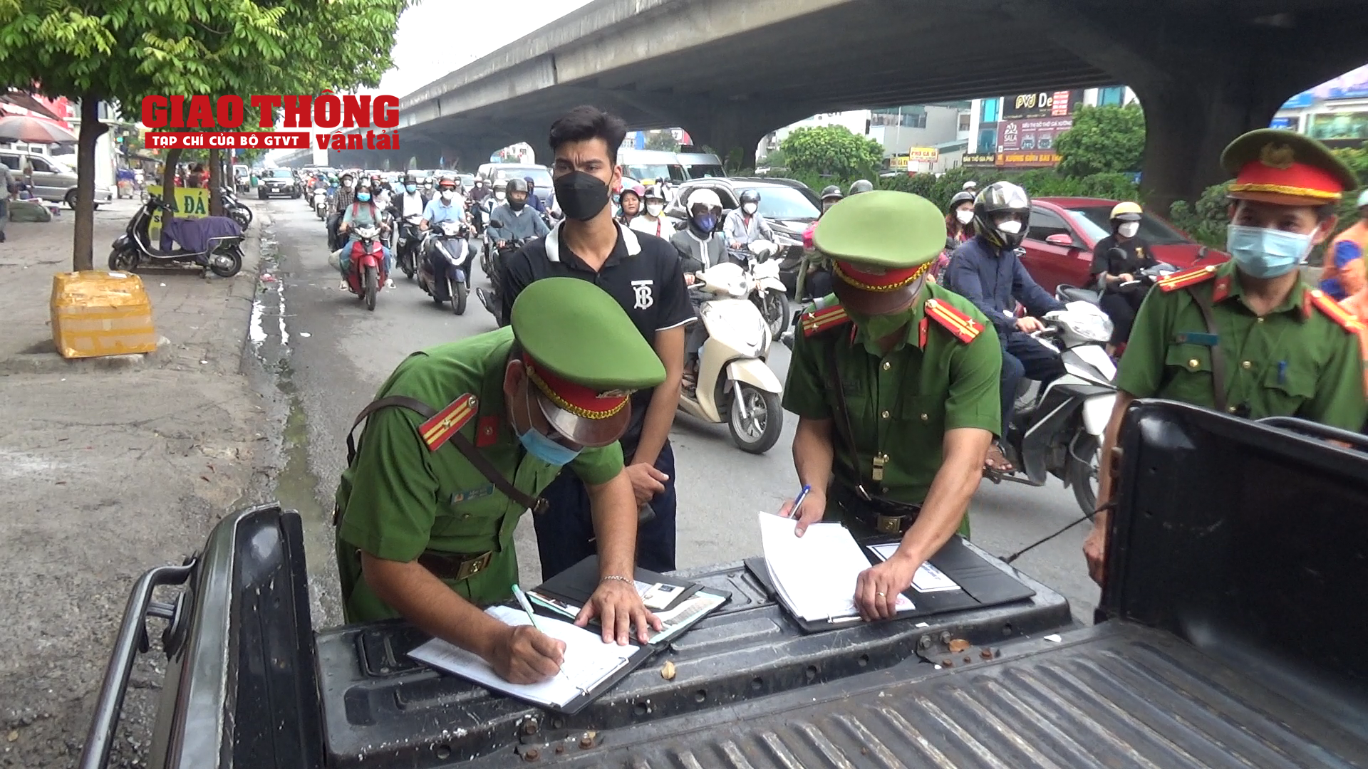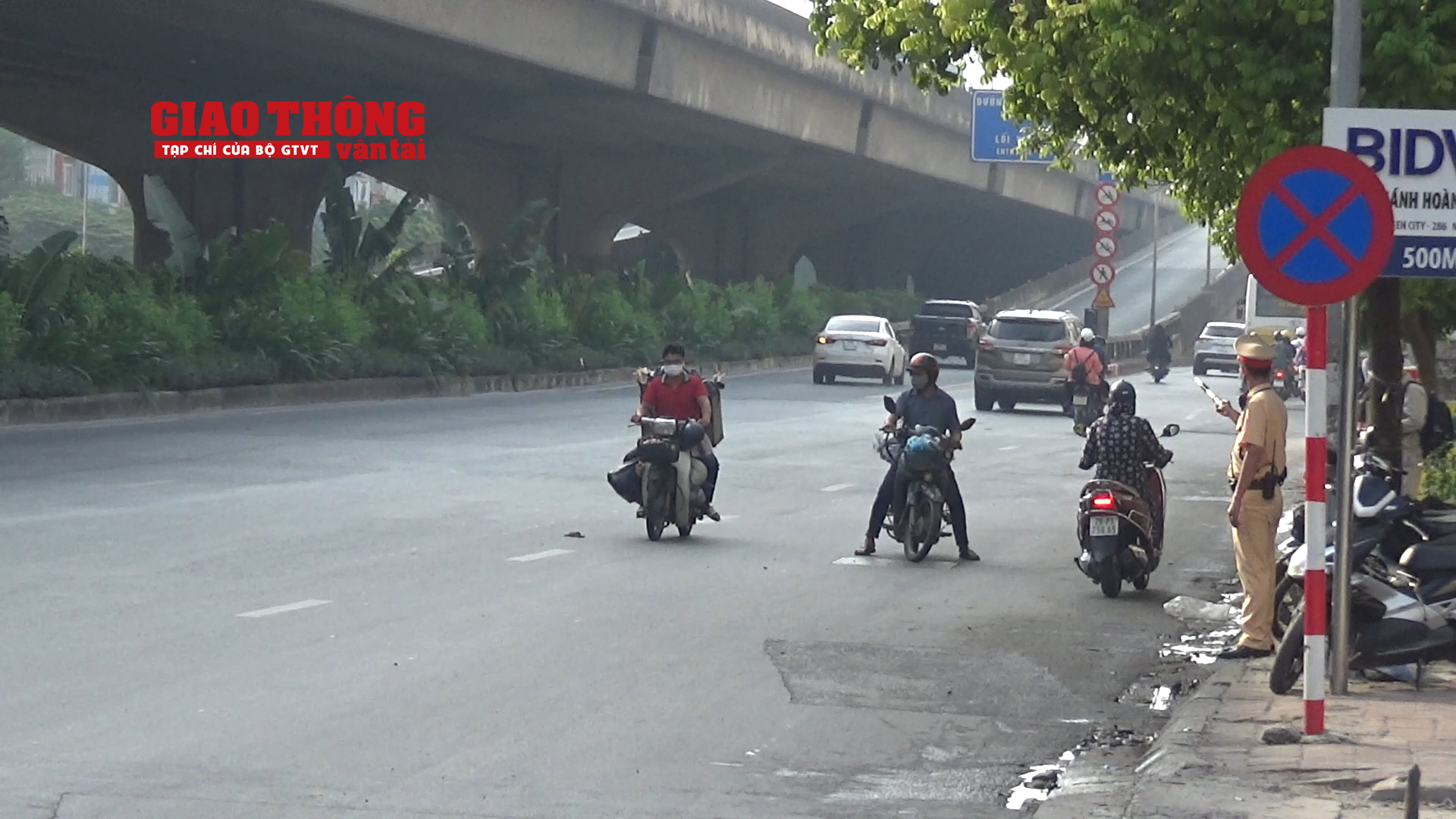Trao đổi với PV Tạp chí Giao thông vận tải, Đại uý Trịnh Việt Thắng, Tổ công tác Đội CSGT đường bộ số 7 (Phòng CSGT Công an TP Hà Nội) thông tin, chỉ trong vòng 30 phút, tổ công tác đã tiến hành dừng xe kiểm tra, lập biên bản 5 trường hợp người điều khiển xe máy đi ngược chiều khu vực này.