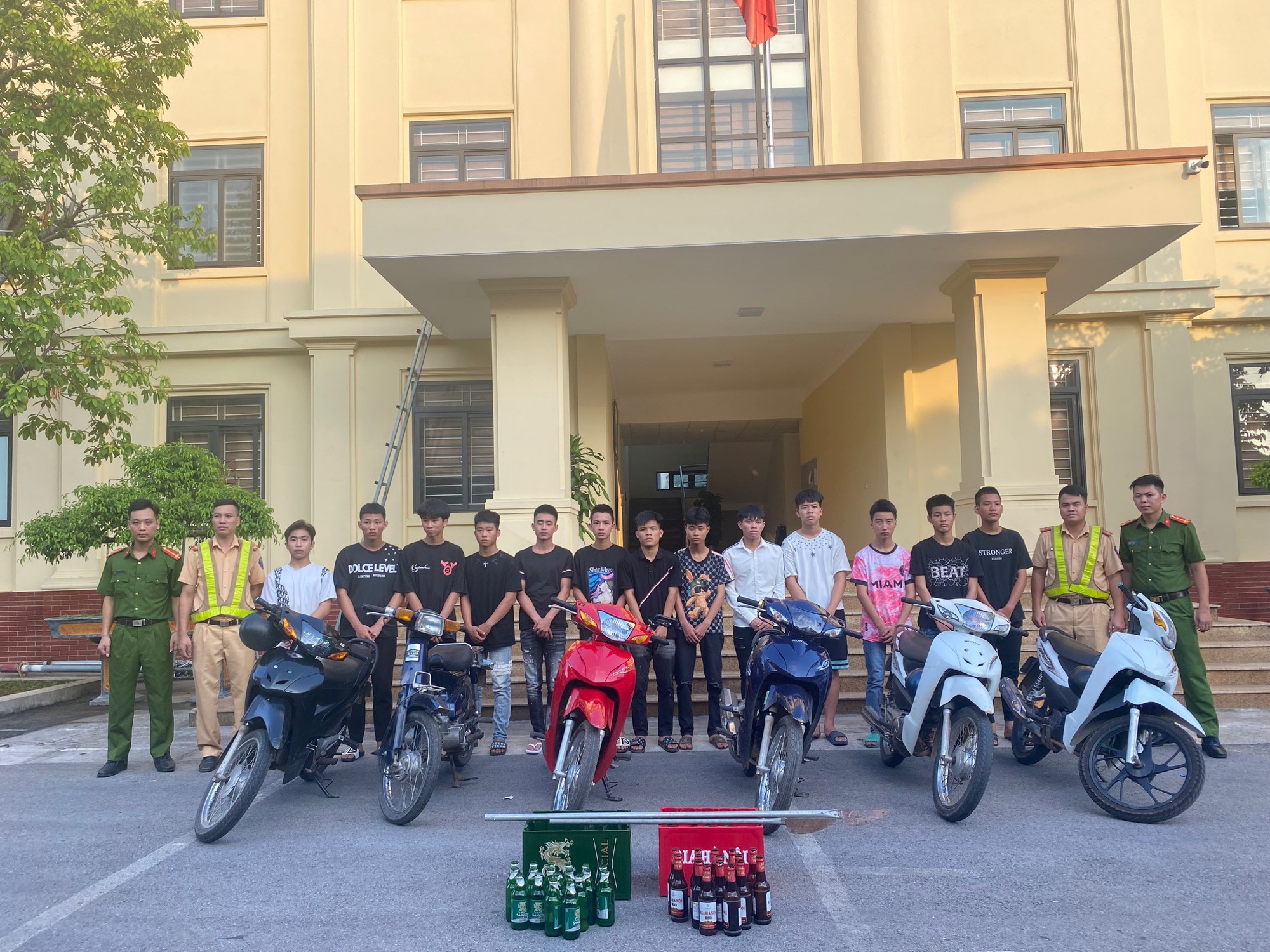 Khi phát hiện lực lượng Công an, các đối tượng đã tẩu tán hung khí và bỏ chạy. Bằng các biện pháp nghiệp vụ, tổ công tác 191 phối hợp với Đội Cảnh sát hình sự và các lực lượng khác của Công an huyện xác minh, làm rõ danh tính 13 đối tượng. Cơ quan công an thu giữ tuýp sắt đầu có gắn dao phóng lợn và nhiều vỏ chai bia, tạm giữ 6 xe mô tô.