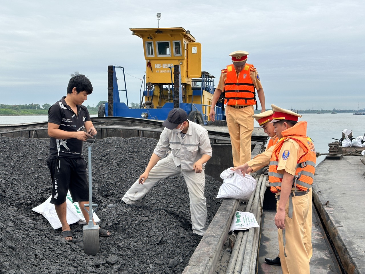 Ngay sau khi bắt giữ, Tổ công tác đã phối hợp với các lực lượng tiến hành xác minh, thu thập tài liệu. Kết quả ban đầu cho thấy, tàu đẩy BKS số NB-6503 (đẩy 2 sà lan BKS NB-6407 và NB-6408), tại thời điểm kiểm tra, trên 2 sà lan đang chứa 2.976,97 tấn than do Hà Văn Quyết (SN 1991, trú ở Gia Lạc, Gia Viễn, Ninh Bình) là thuyền trưởng; trên tàu đẩy này có 2 thuyền viên gồm: Trần Trung Kiên (SN 1988) và Trần Thế Huynh (SN 1989), cùng trú tại Gia Lạc, Gia Viễn, Ninh Bình.