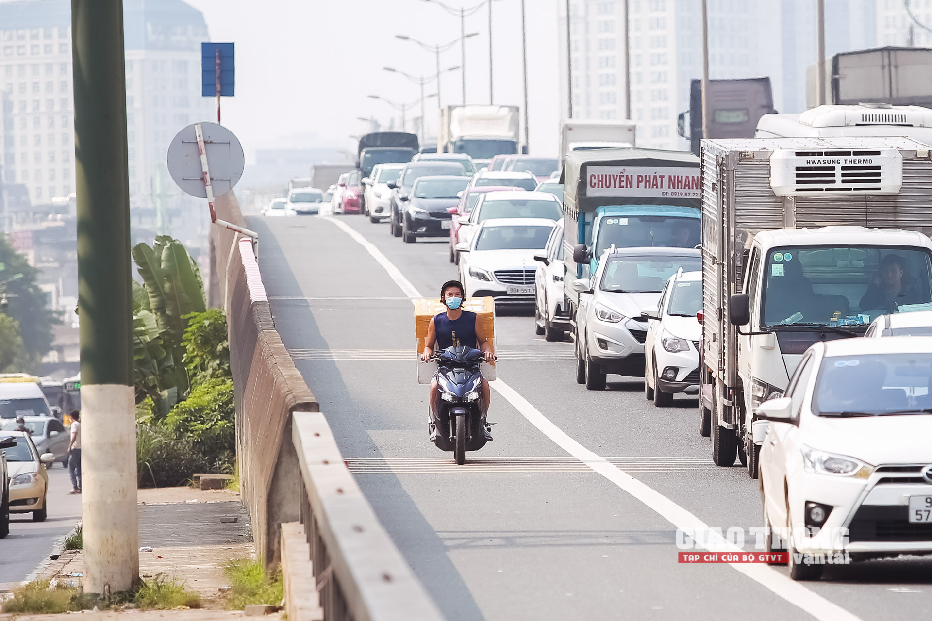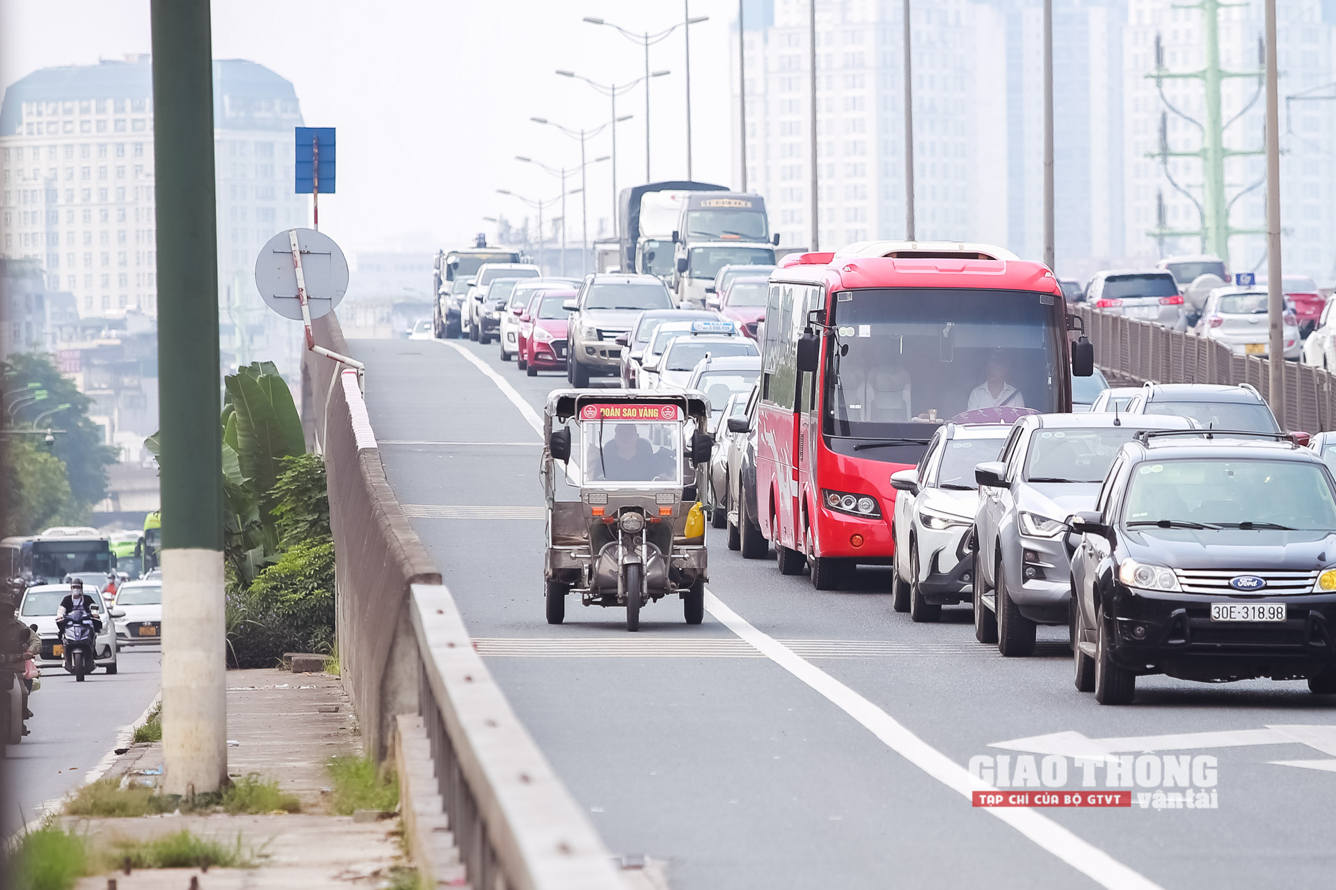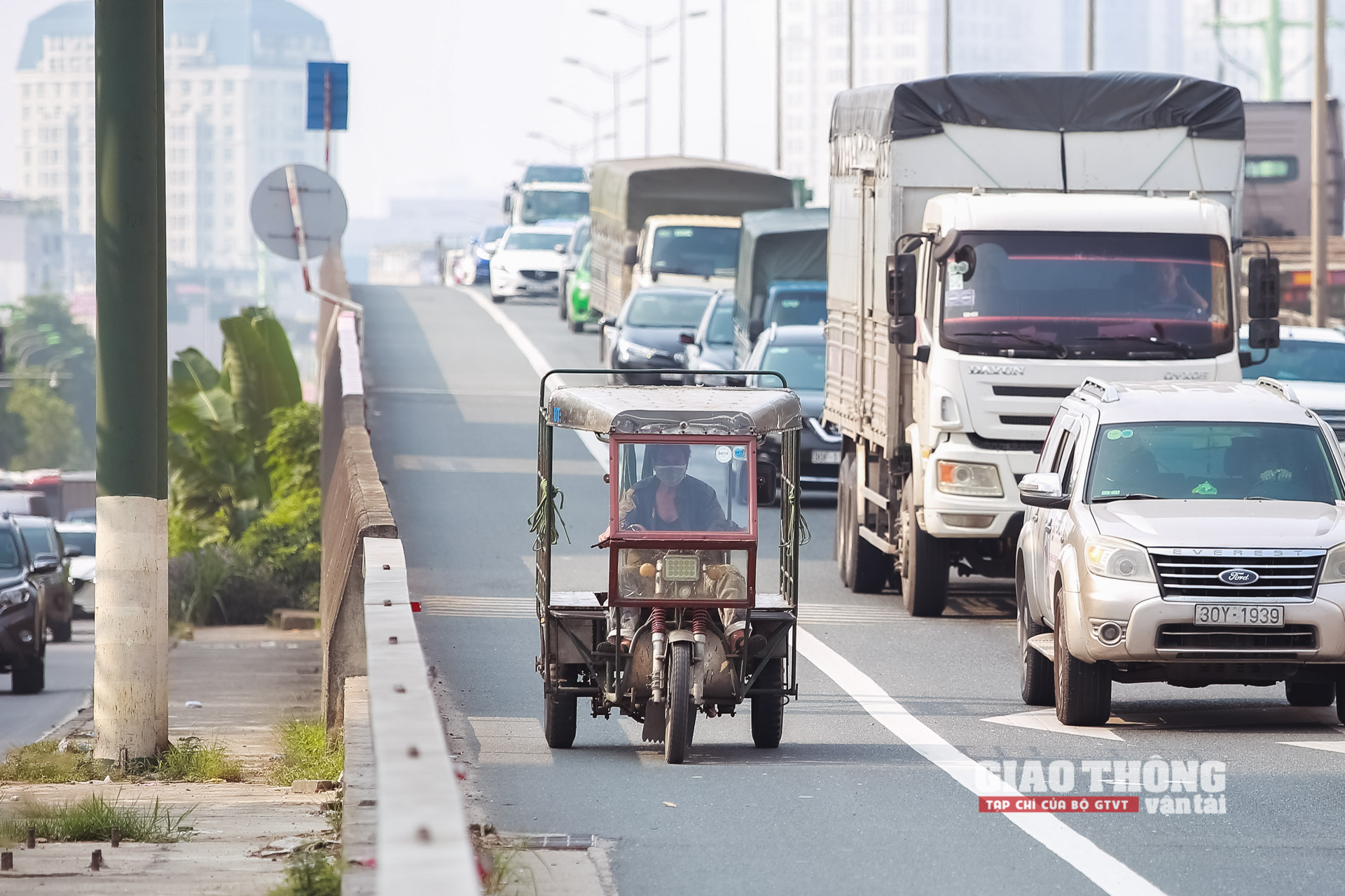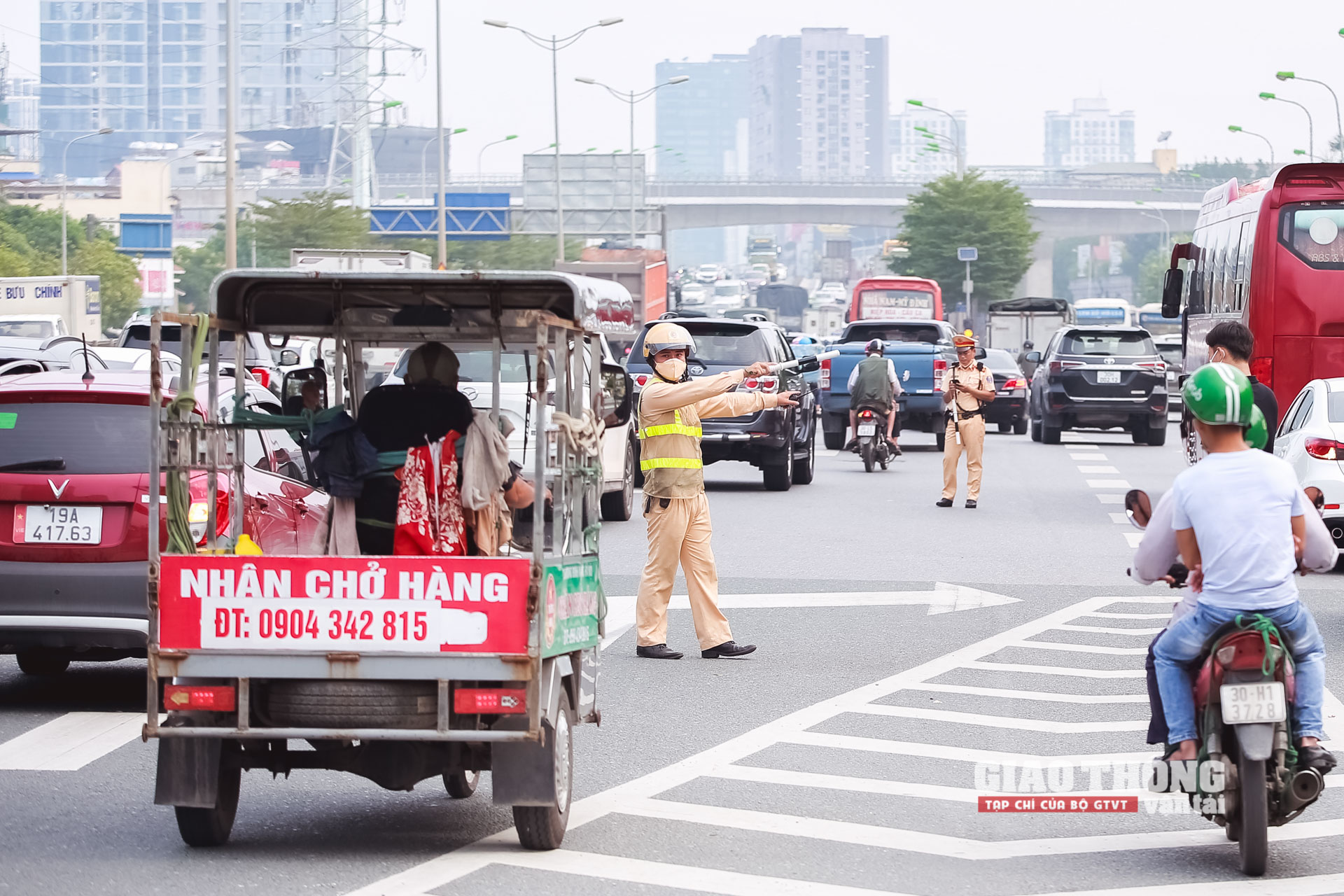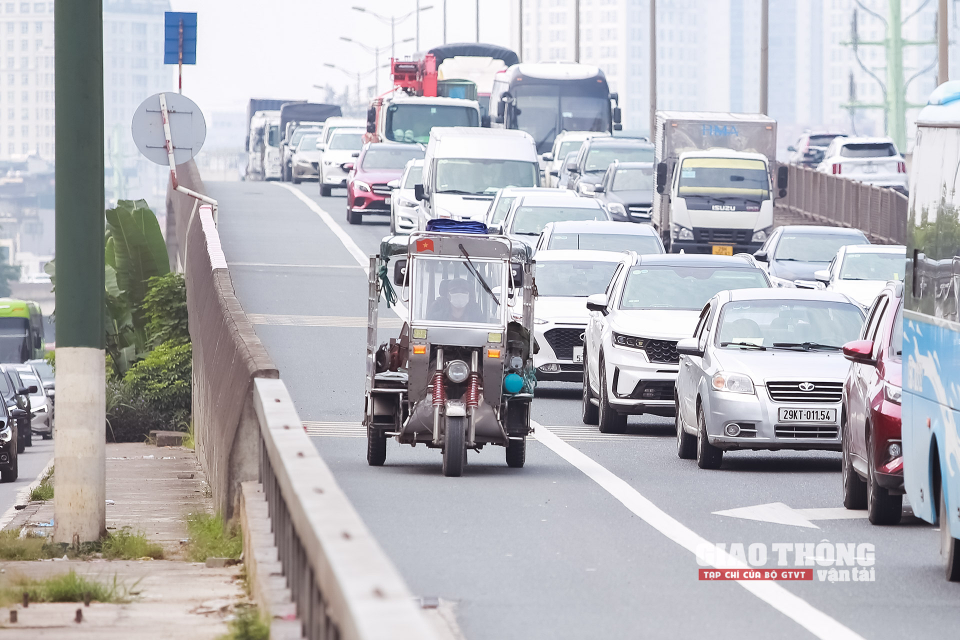 Tương tự, tình trạng xe ba gác vi phạm đi lên vành đai 3 trên cao diễn ra khá phổ biến. Trong giờ cao điểm sáng 26/9/2022, lực lượng CSGT liên tiếp phát hiện và xử lý vi phạm đối với loại phương tiện này