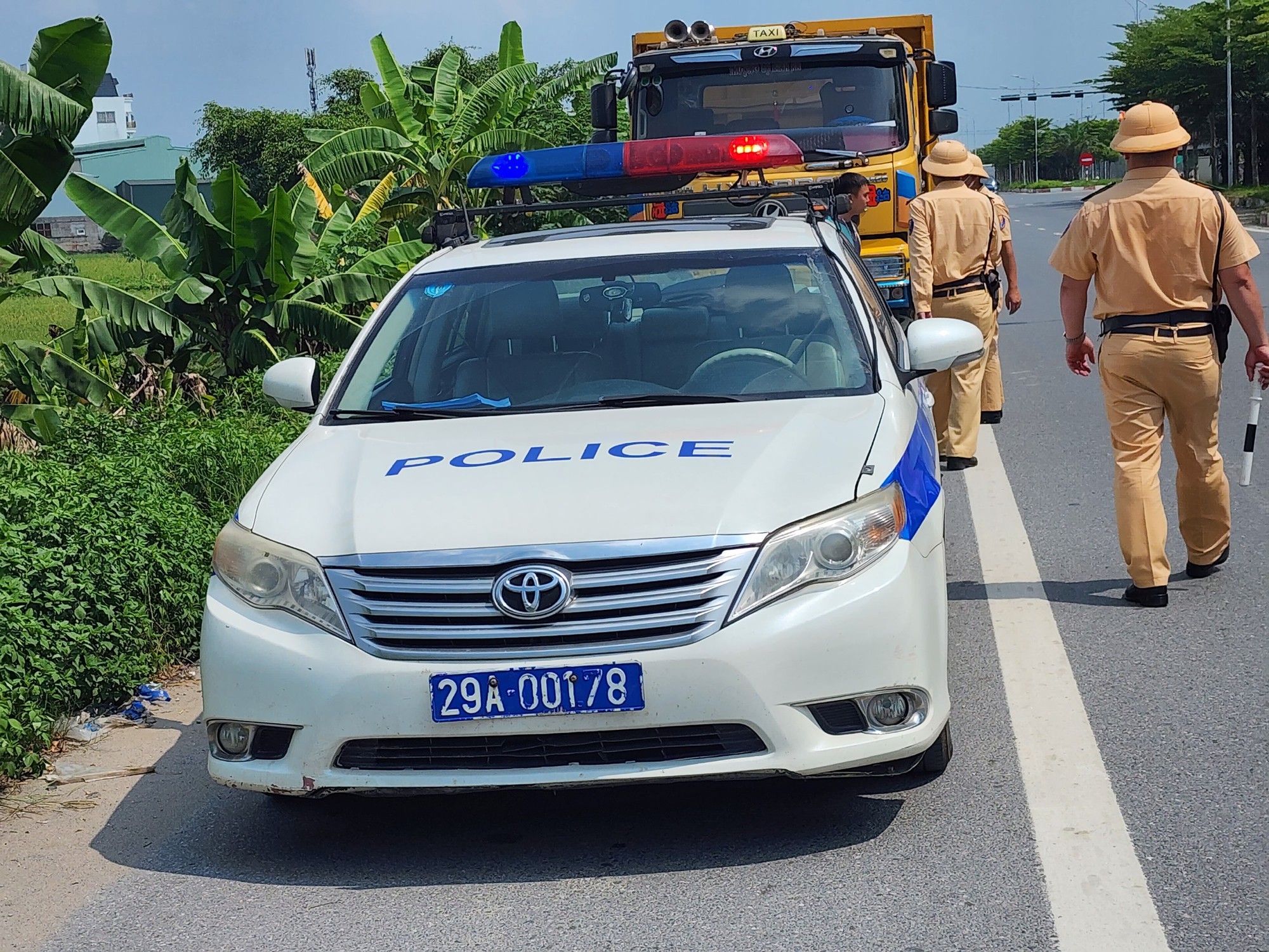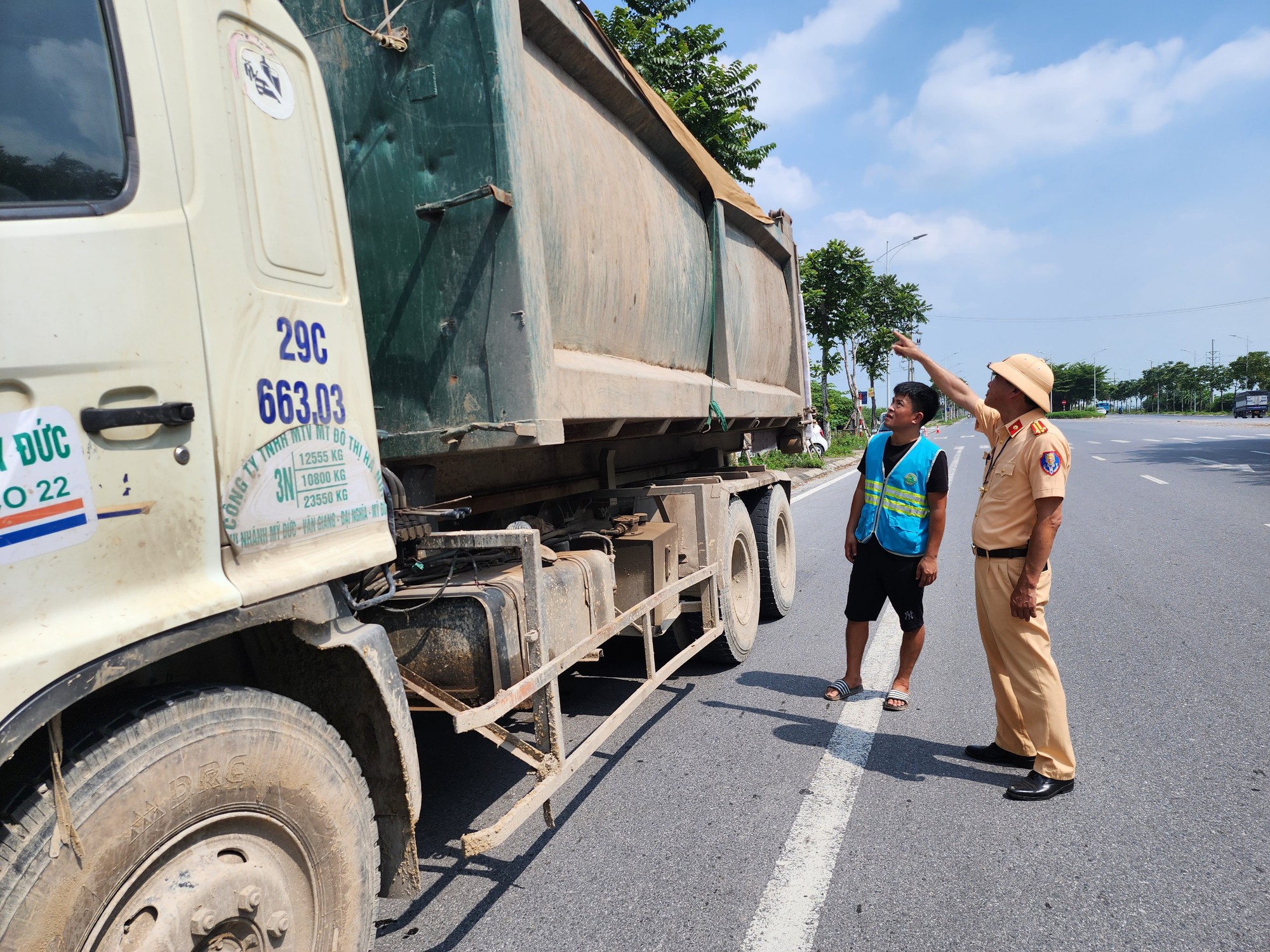 Theo ghi nhận của PV, vào thời điểm trên, tổ công tác gồm: Trung tá Phạm Anh Tuấn, Thiếu tá Nguyễn Anh Ngọc, Thượng uý Phan Tiến Đạt, Thiếu tá Quách Anh Tuấn, Đại uý Lê Quý Đạt và Đại uý Vũ Văn An thuộc Đội CSGT đường bộ số 10 do Trung tá Tuấn làm tổ trưởng tiến hành cắm chốt tại K5+500 trên đường Cienco 5 thuộc địa bàn huyện Thanh Oai hướng đi quận Hà Đông (Hà Nội). Theo đó, tổ công tác tiến hành kiểm tra xe tải chở rác mang BKS 29C-663xx. của Công ty TNHH MTV Môi trường Đô thị Hà Nội chi nhánh Mỹ Đức do tài xế Vũ Văn T. (sinh năm 1989, ở Tế Tiêu, Mỹ Đức, Hà Nội) điều khiển.