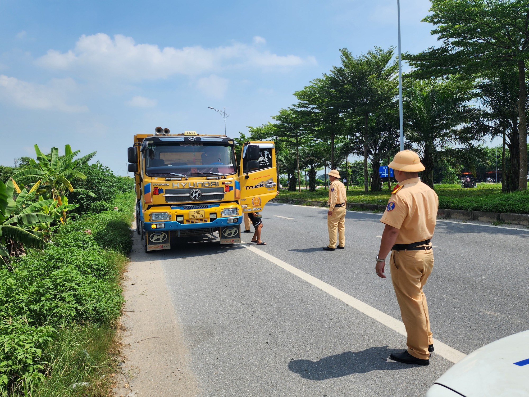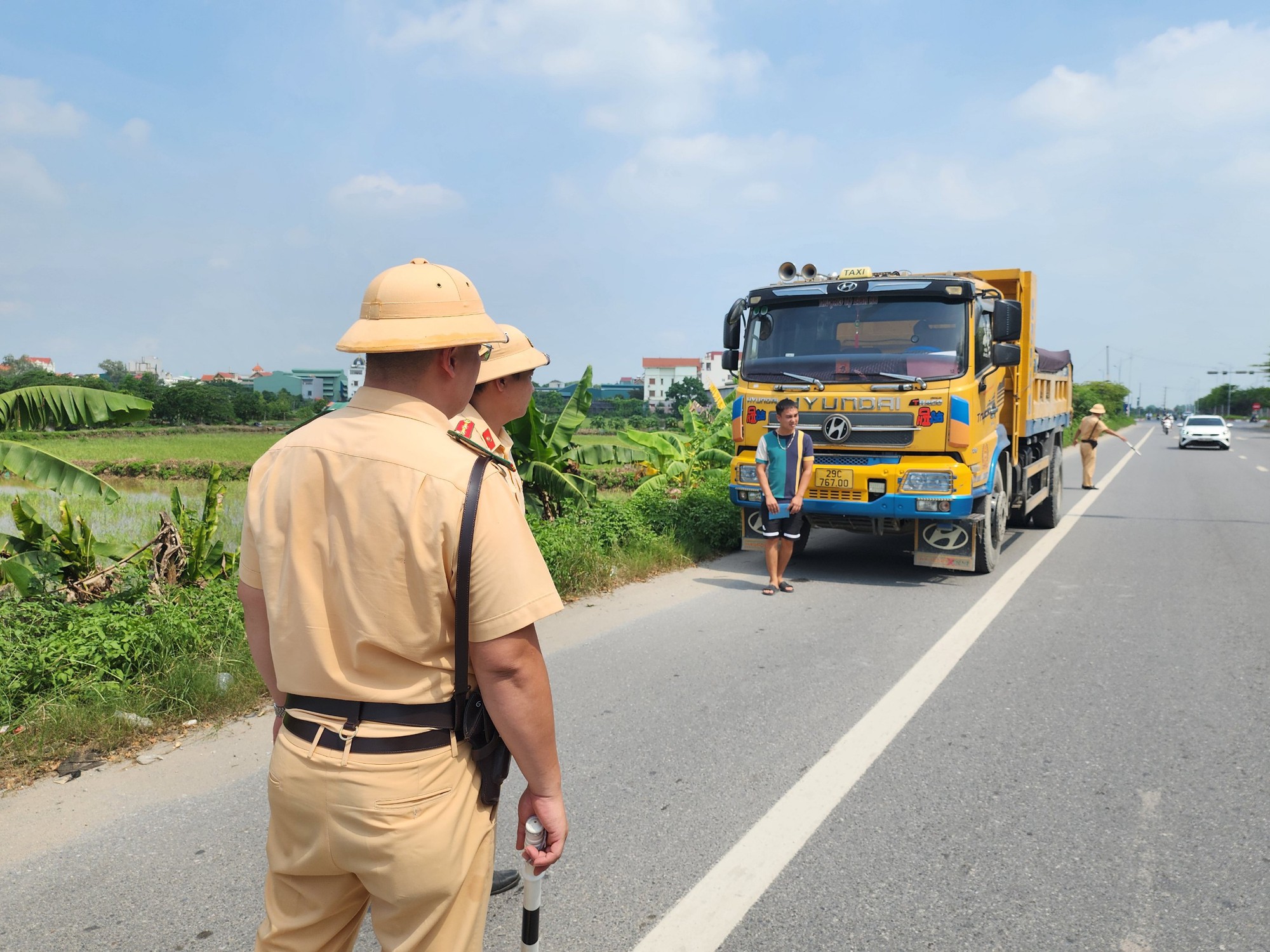 Ngay sau khi dừng xe, CSGT thông báo cho tài xế T. biết kế hoạch kiểm tra chuyên đề đối với xe tải lưu thông trên tuyến đường địa bàn quản lý. Tài xế T. chấp hành và gãi đầu xin được gọi báo về đơn vị đến phối hợp cùng giải quyết.