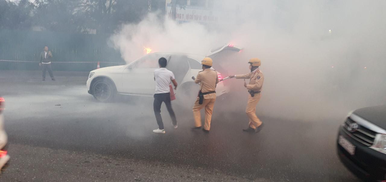 Đến địa chỉ số 4 Phạm Hùng, phường Mai Dịch, quận Cầu Giấy (Hà Nội), tổ công tác gồm: Thiếu tá Lê Công Thông, Thượng uý Nguyễn Cao Bằng, Đại uý Nguyễn Tiến Hà và Trung uý Lê Thanh Hải thuộc Đội CSGT đường bộ số 6 đã dừng được phương tiện, nhanh chóng mở cửa đưa những người trên xe xuống khu vực an toàn trước khi xe ô tô bốc cháy phần đầu.