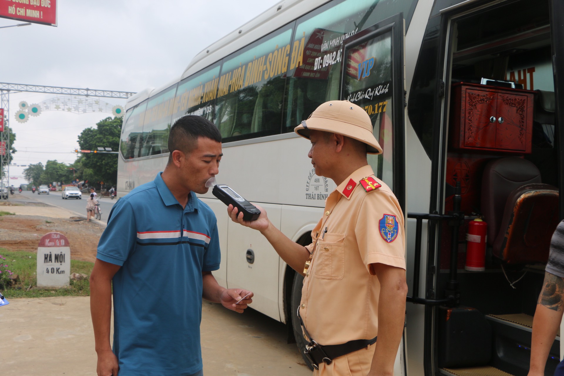 Ngay sau khi dừng xe, tổ công tác thông báo kiểm tra theo chuyên đề đối với ô tô khách lưu thông trên tuyến QL6 tỉnh Hoà Bình. Sau khi kiểm tra trên ô tô khách 17F-004.xx, CSGT yêu cầu tài xế M. kiểm tra nồng độ cồn, kết quả người này không vi phạm.