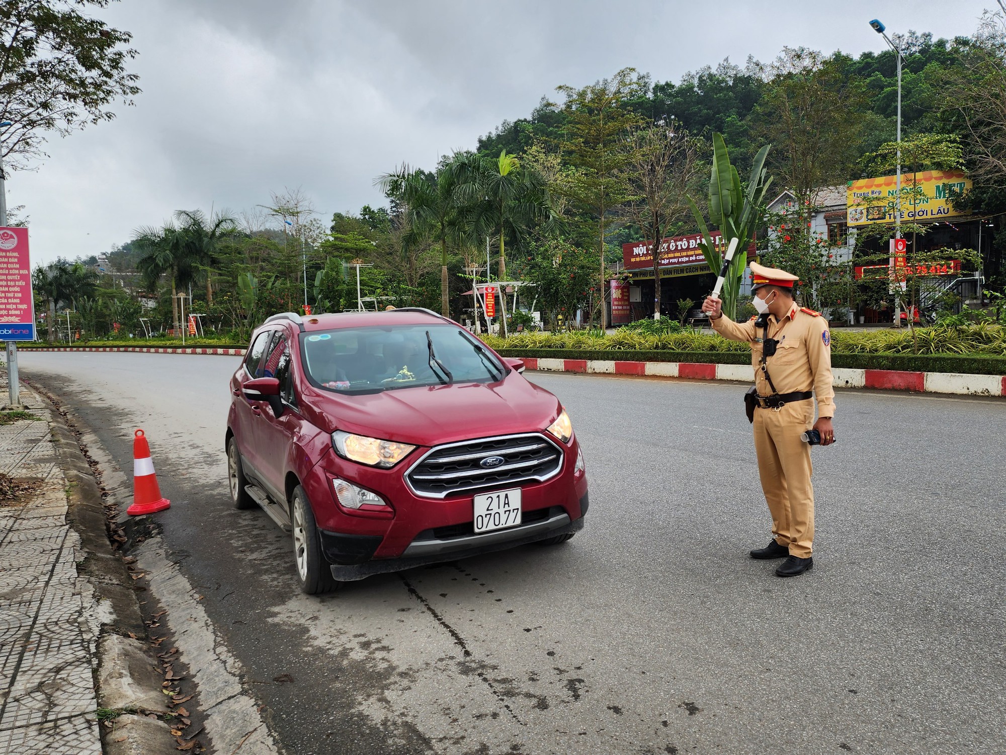 Đội CSGT đường bộ số 1 (Phòng CSGT Công an tỉnh Yên Bái) cùng với lực lượng Cảnh sát cơ động kiểm tra xử lý vi phạm theo chuyên đề đối với người điều khiển phương tiện chạy quá tốc độ, vi phạm nồng độ cồn trên địa bàn tỉnh Yên Bái