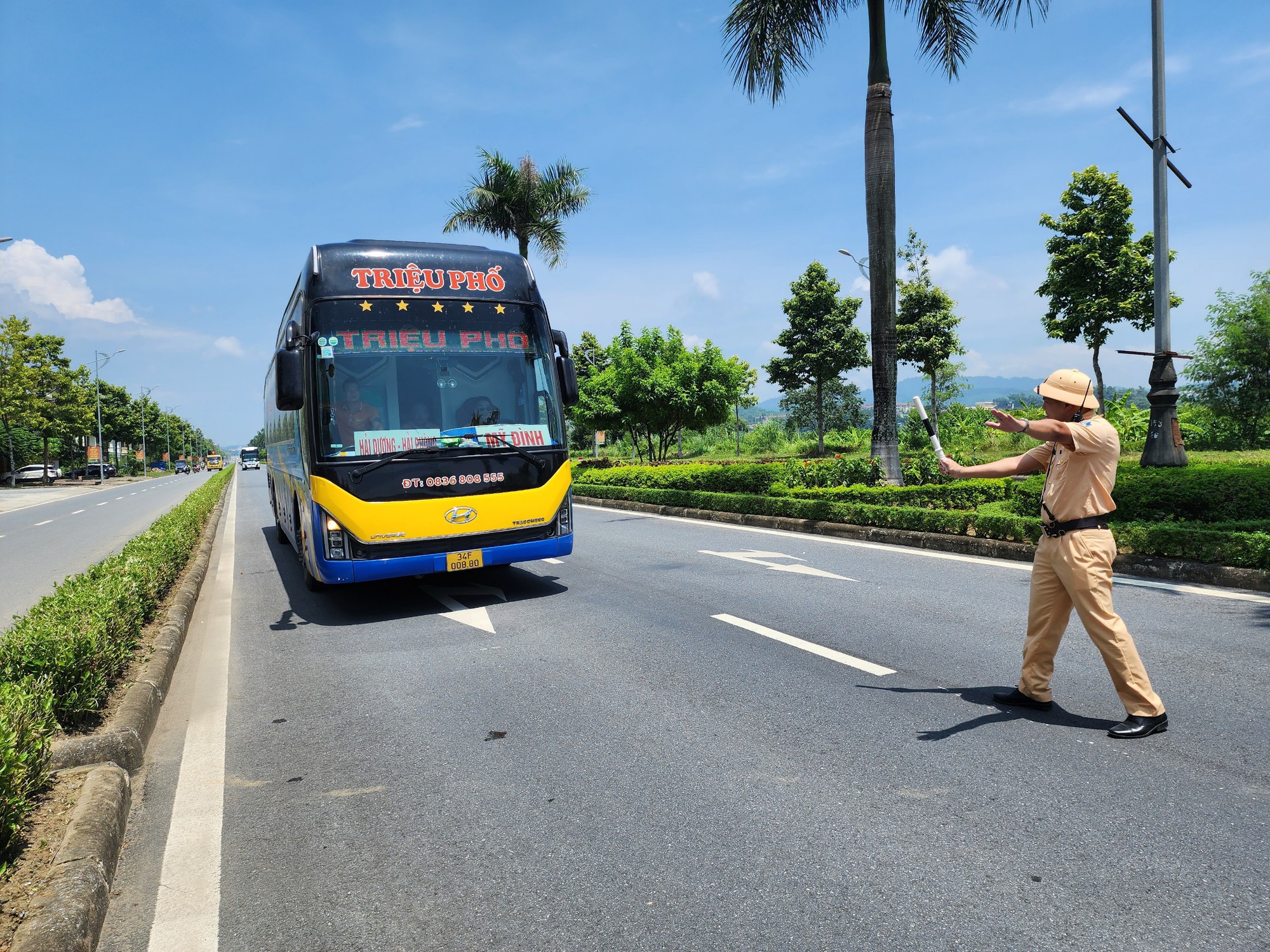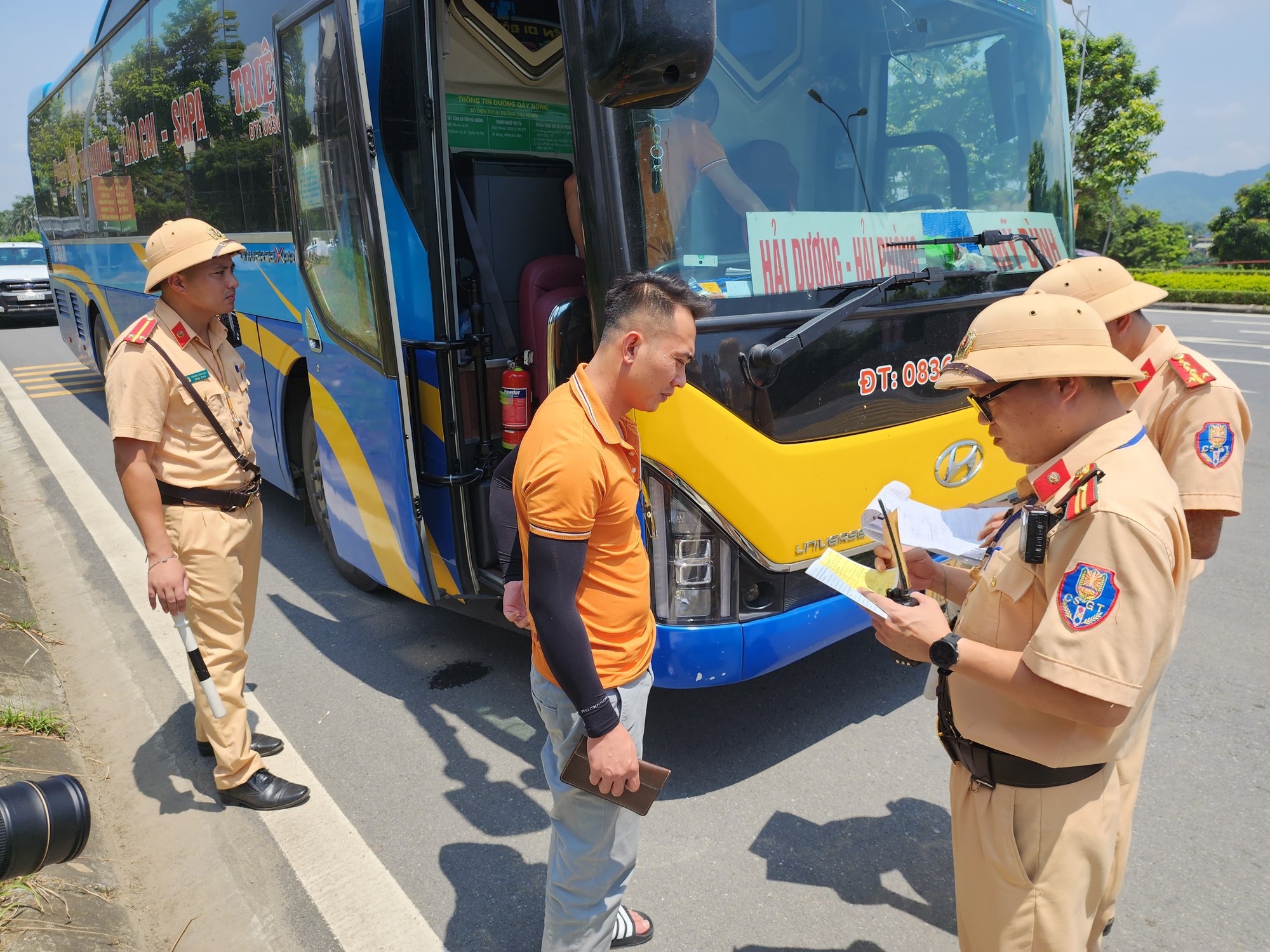 Chiều 17/8, ghi nhận của PV Tạp chí Giao thông vận tải, tổ công tác Đội Tuần tra đường bộ số 7 (Phòng CSGT Công an tỉnh Lào Cai) kiểm tra, xử lý chuyên đề đối với các xe ô tô khách, ô tô con vi phạm chạy quá tốc độ lưu thông trên địa bàn TP. Lào Cai