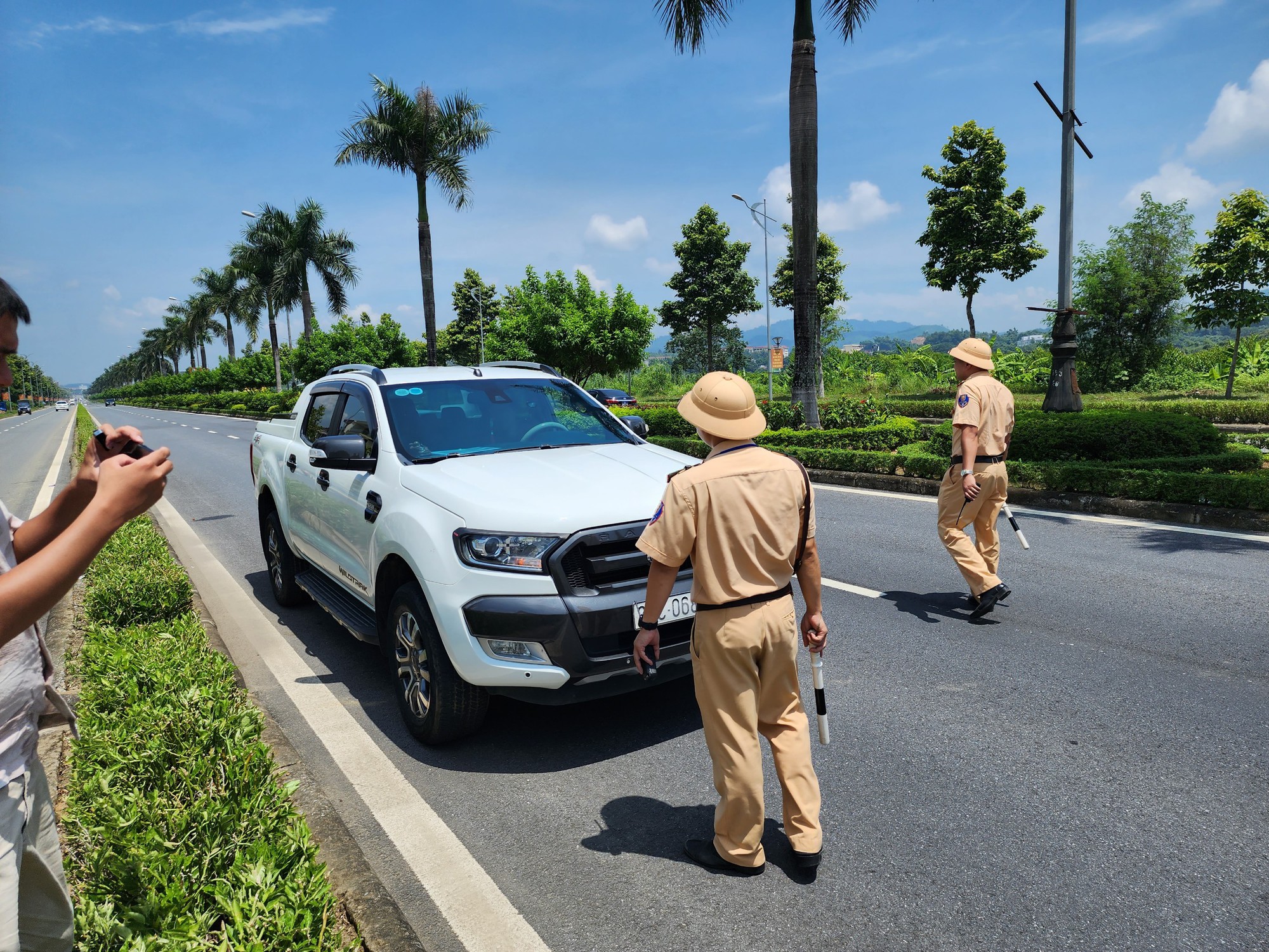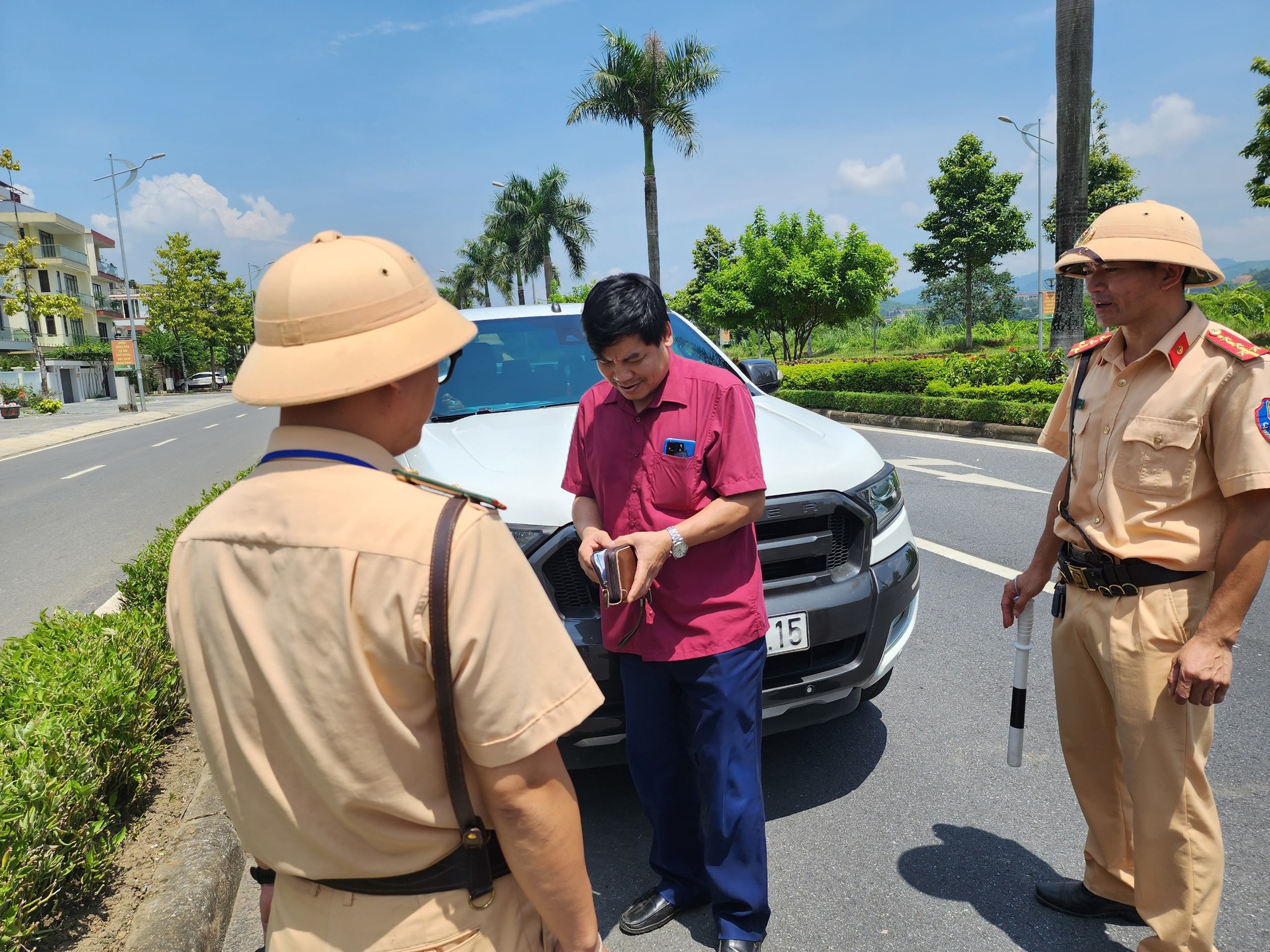 Chỉ ít phút sau, tổ công tác tiến hành dừng xe ô tô bán tải mang BKS 24C-068.15 do anh Trương Anh Tuấn (sinh năm 1970, ở phường Kim Tân, TP. Lào Cai, tỉnh Lào Cai) điều khiển. CSGT thông báo chuyên đề kiểm tra tốc độ, đồng thời cho anh Trương Anh Tuấn xem hình ảnh, tốc độ xe ô tô bán tải 24C-068.15 do anh điều khiển vi phạm chạy quá tốc độ từ 5 đến 10 km và yêu cầu anh vào chấp hành việc lập biên bản theo qui định.