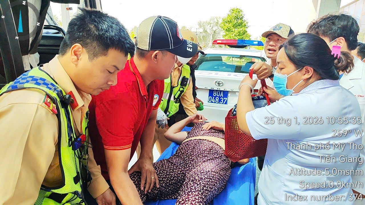 Trước đó, vào 10h45 ngày 25/01, trong quá trình làm nhiệm vụ tại Km49+800 tuyến cao tốc TP. Hồ Chí Minh – Trung Lương – Mỹ Thuận – Cần Thơ, Tổ CSGT số 4 thuộc Đội CSGT đường bộ cao tốc số 7, Phòng 6, Cục CSGT đã tiếp nhận đề nghị khẩn cấp từ lái xe ô tô khách biển kiểm soát 68H-050.01 xin hỗ trợ đưa người bệnh đi cấp cứu.