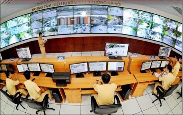 Một số hình ảnh từ Đội Chỉ huy giao thông và điều khiển đèn tín hiệu giao thông, Phòng CSGT Công an TP Hà Nội đang giám sát điều tiết giao thông qua hệ thống camera
