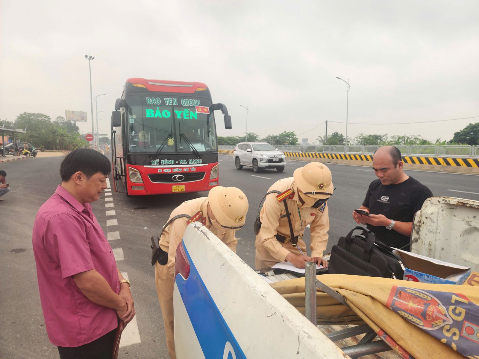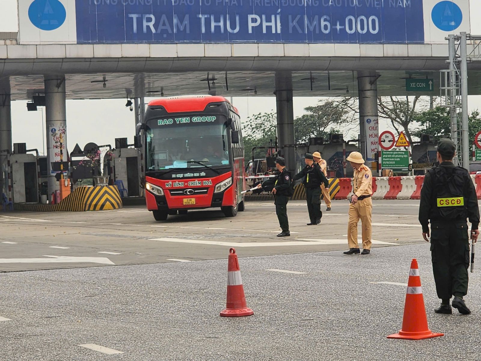 Cùng thời điểm trên, tại Km6 trạm thu phí lối ra của tuyến cao tốc Nội Bài - Lào Cai, tổ công tác gồm lực lượng CSGT, CSCĐ do Đại uý Phan Thanh Nam, Đội tuần tra kiểm soát giao thông đường bộ cao tốc số 1, phòng Hướng dẫn tuần tra cao tốc, Cục CSGT (Bộ Công an) làm tổ trưởng, dừng các phương tiện ô tô khách để kiểm tra các điều kiện đối với người lái và phương tiện có đảm bảo theo qui định, cũng như kiểm tra đếm hành hành trên xe có chở quá số người, hàng hoá trong phương tiện.