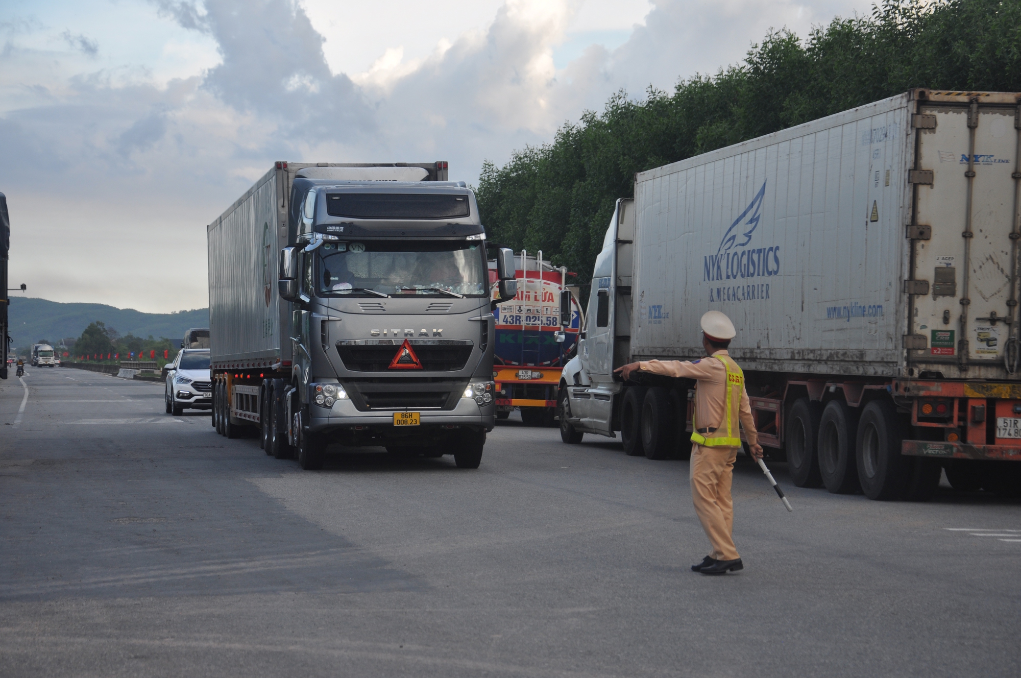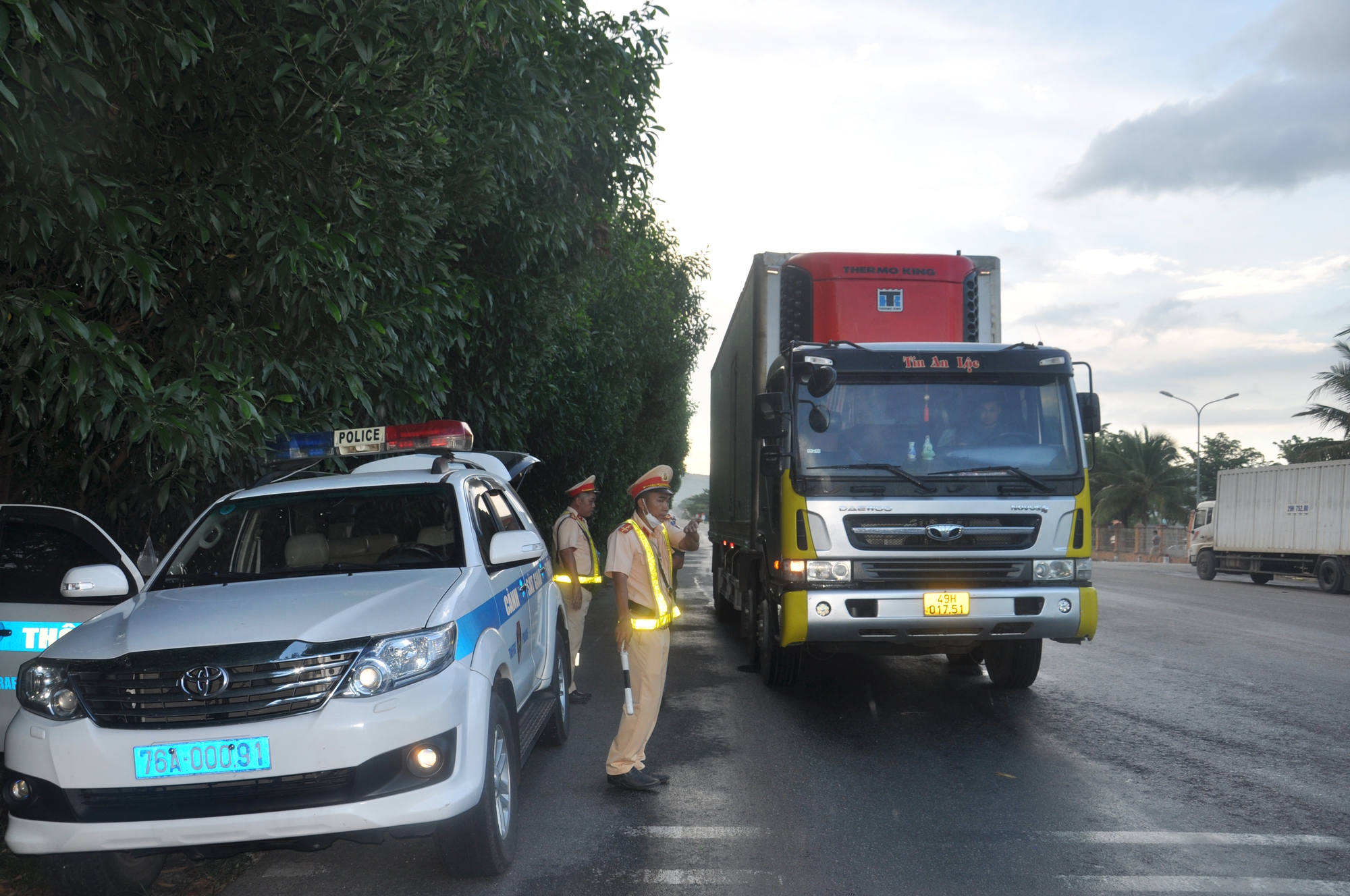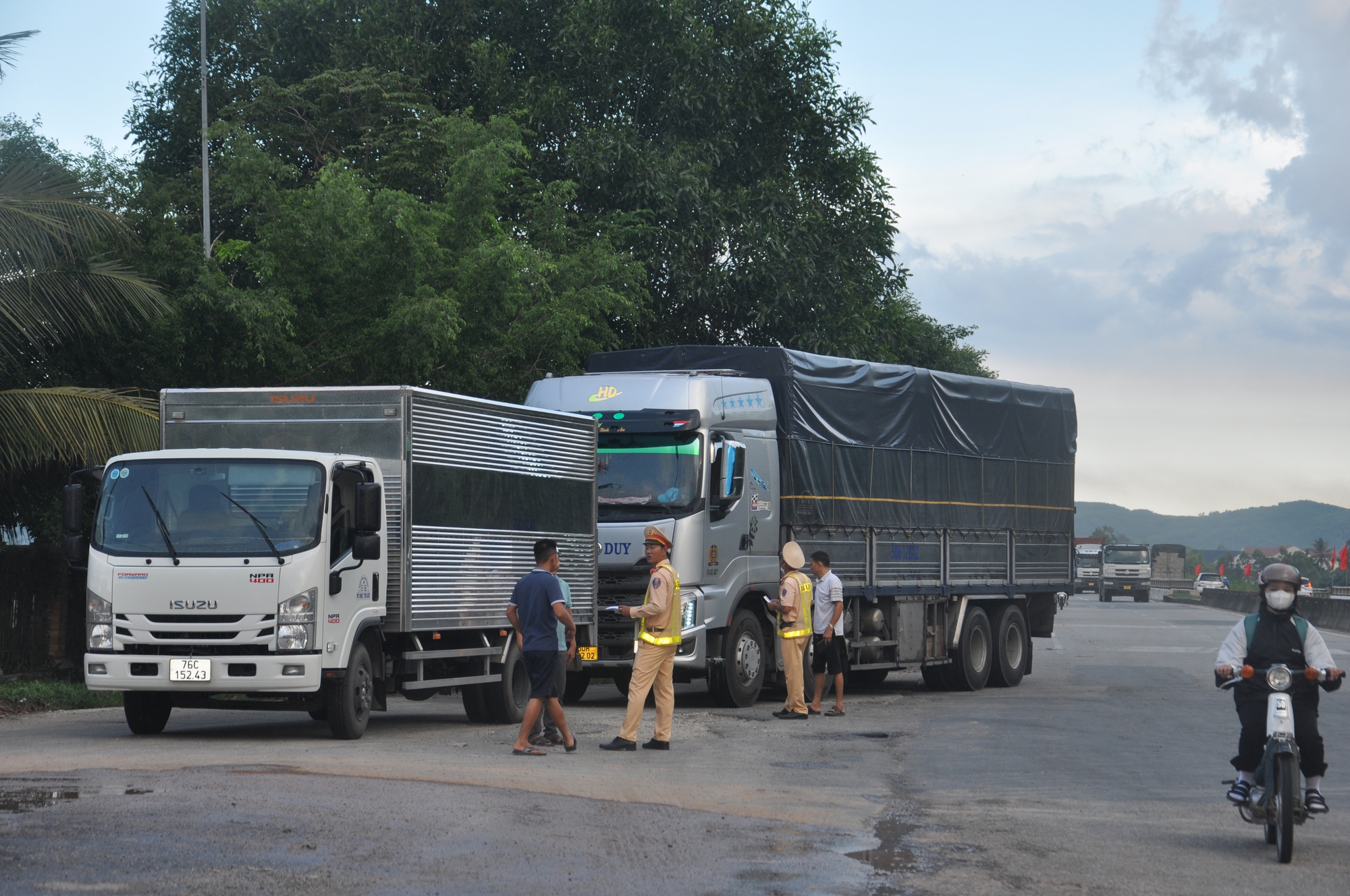 CSGT Quảng Ngãi kiểm soát xe container, xe tải trên tuyến QL1 qua địa phận thị xã Đức Phổ