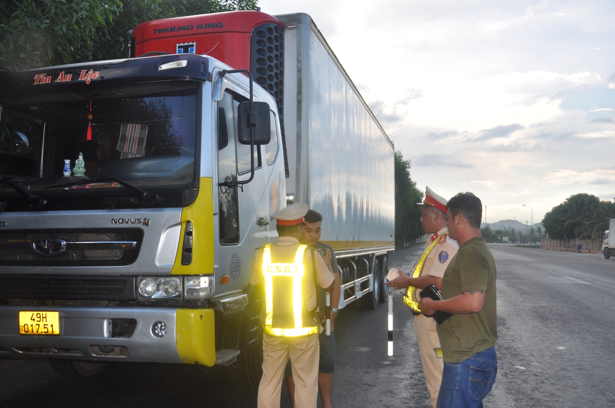 Tiếp đó, phát hiện xe đầu kéo BKS 51D-335.xx kéo theo rơ-móoc BKS 50R-033.xx do tài xế Mai Phạm Đ (sinh năm 1996, trú huyện Đức Cơ, tỉnh Gia Lai) điều khiển có dấu hiệu vi phạm, tổ công tác ra hiệu lệnh dừng xe kiểm tra và xác định tài xế Mai Phạm Đ. không có GPLX.