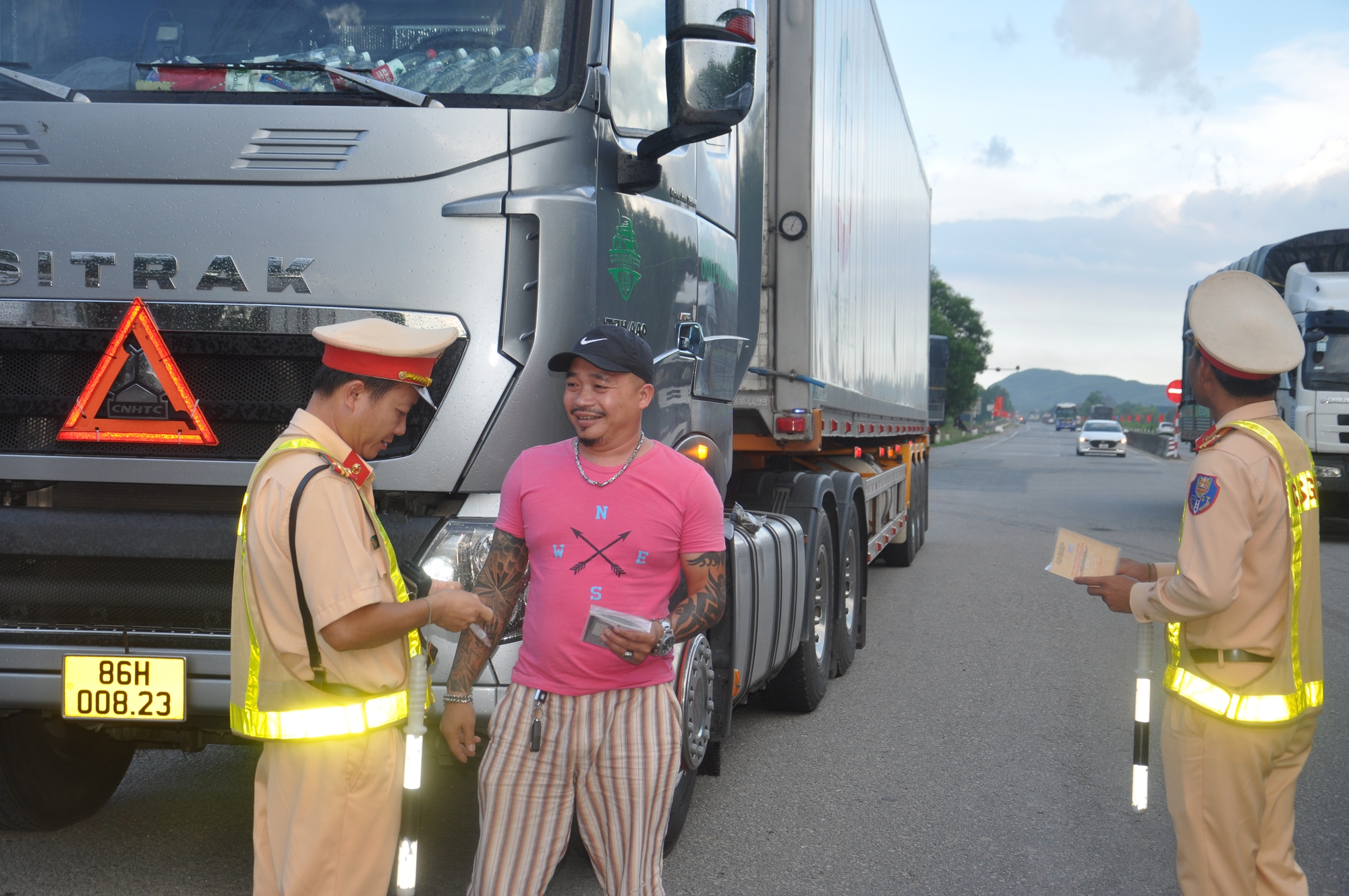 Kiểm tra nồng độ cồn tài xế xe đầu kéo container BKS 86H-006.23