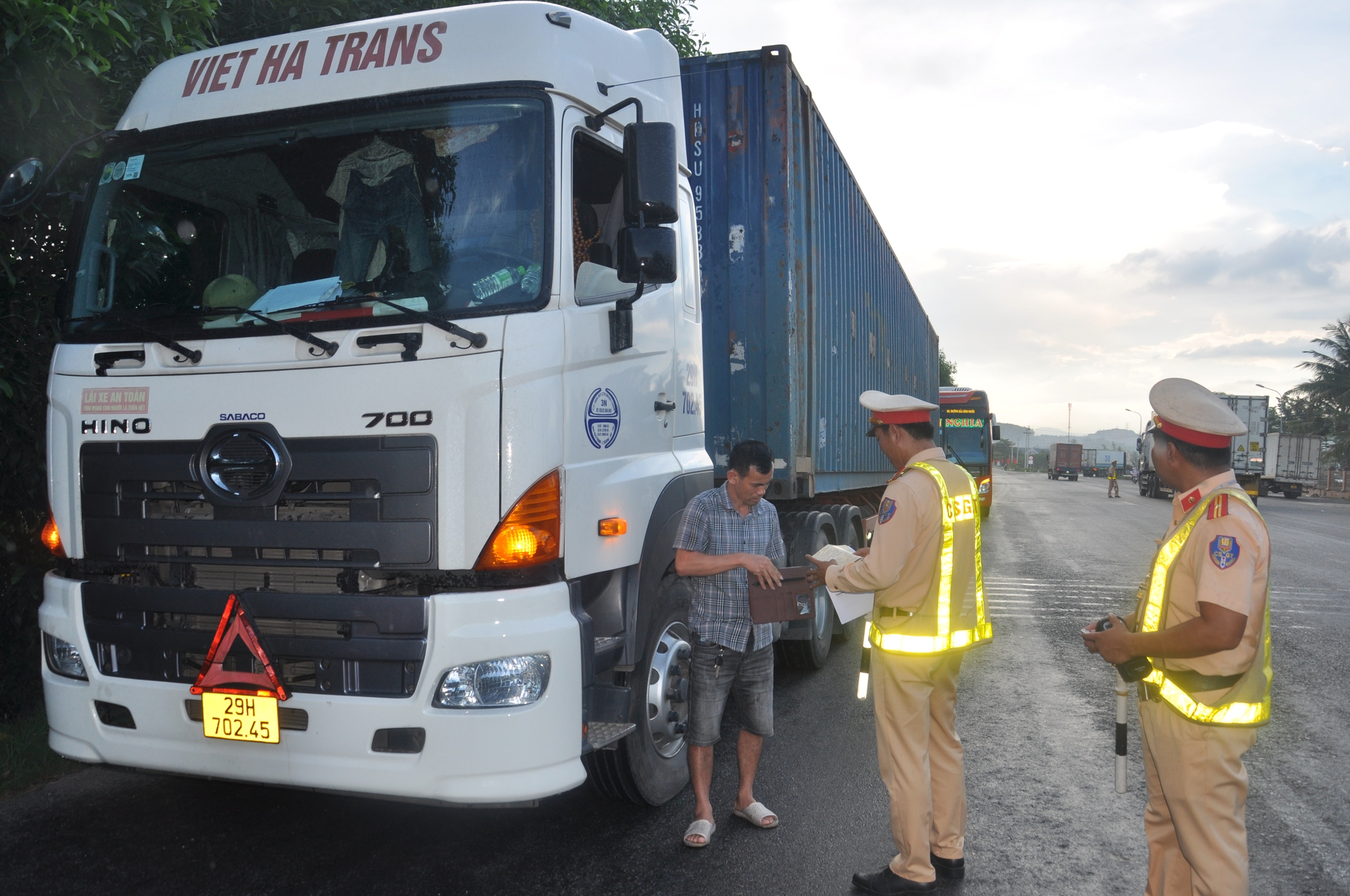 "Qua làm việc với các tài xế không có GPLX theo quy định, hầu hết là tài xế phụ. Các trường hợp vi phạm này đều bị xử lý nghiêm, tạo tính răn đe, nhằm nâng cao nhận thức của đội ngũ lái xe, chủ xe. Qua đó kịp thời ngăn ngừa TNGT, kéo giảm TNGT trên địa bàn, nhất là TNGT liên quan đến xe khách, container", Trung tá Nghĩa nói và cho biết, đơn vị được giao phụ trách kiểm soát tuyến QL1 từ Km 1085 - Km 1125. Thời gian qua, khi triển khai kế hoạch tổng kiểm soát xe khách, container, trên địa bàn tuyến thường xuyên có mưa lớn nhưng đơn vị vẫn đảm bảo huy động tối đa lực lượng, bố trí các tổ công tác làm nhiệm vụ 24/24h trên tuyến.