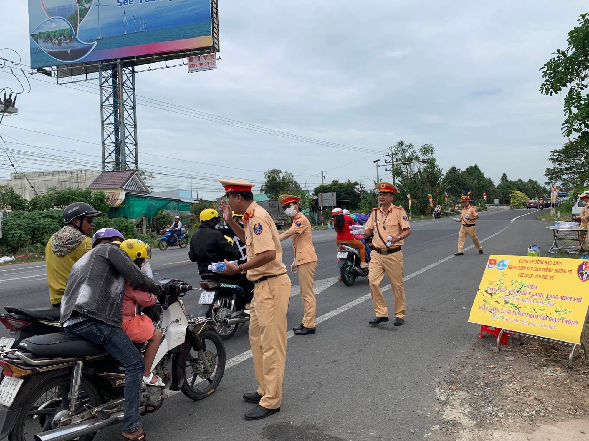 Một số hình ảnh CSGT công an các tỉnh phát nước, tiếp xăng giúp người tham giao thông trên đường về quê