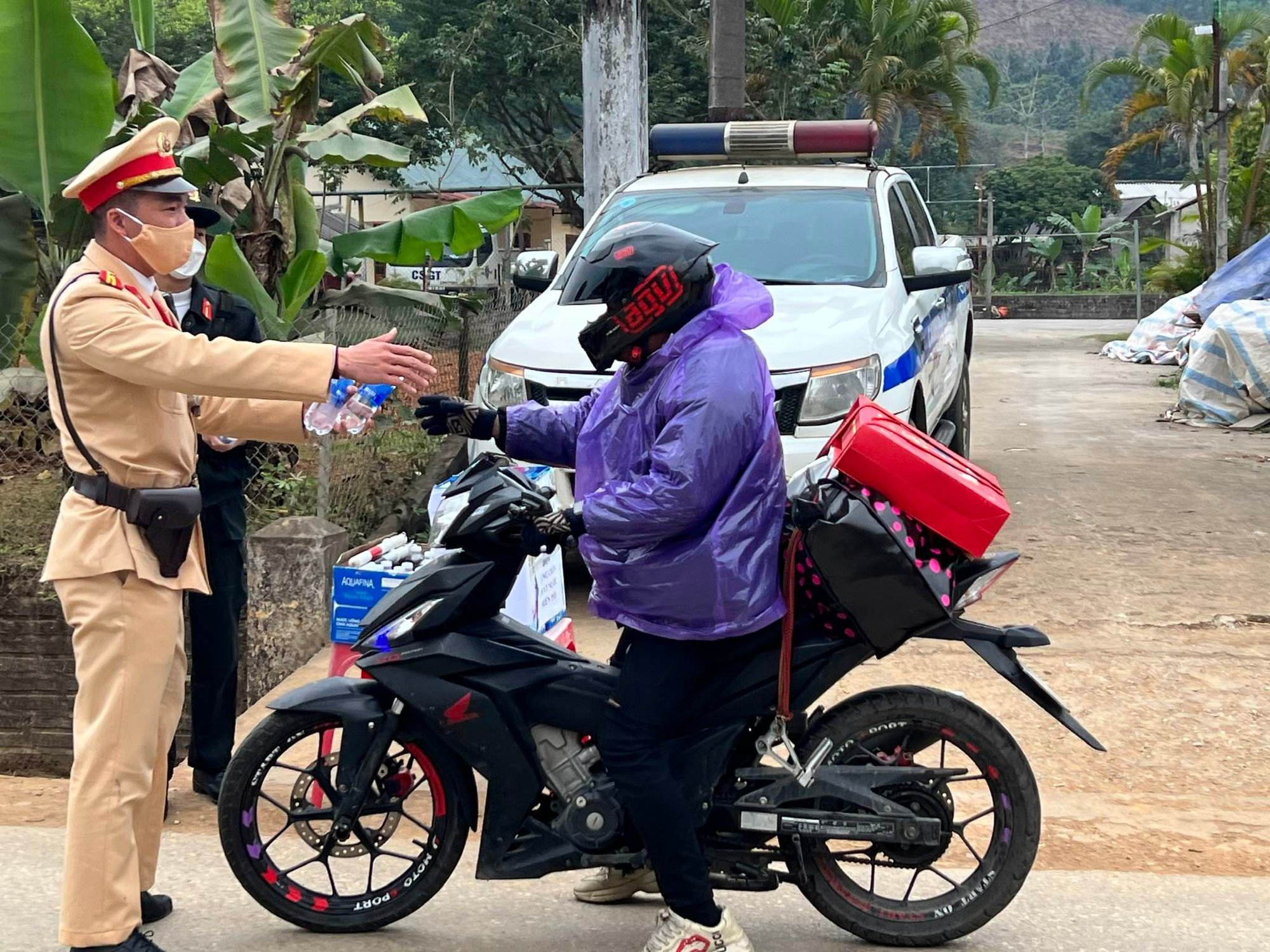 Một số hình ảnh lực lượng CSGT giúp người dân, tặng nước, xăng xe giúp đỡ người đi đường