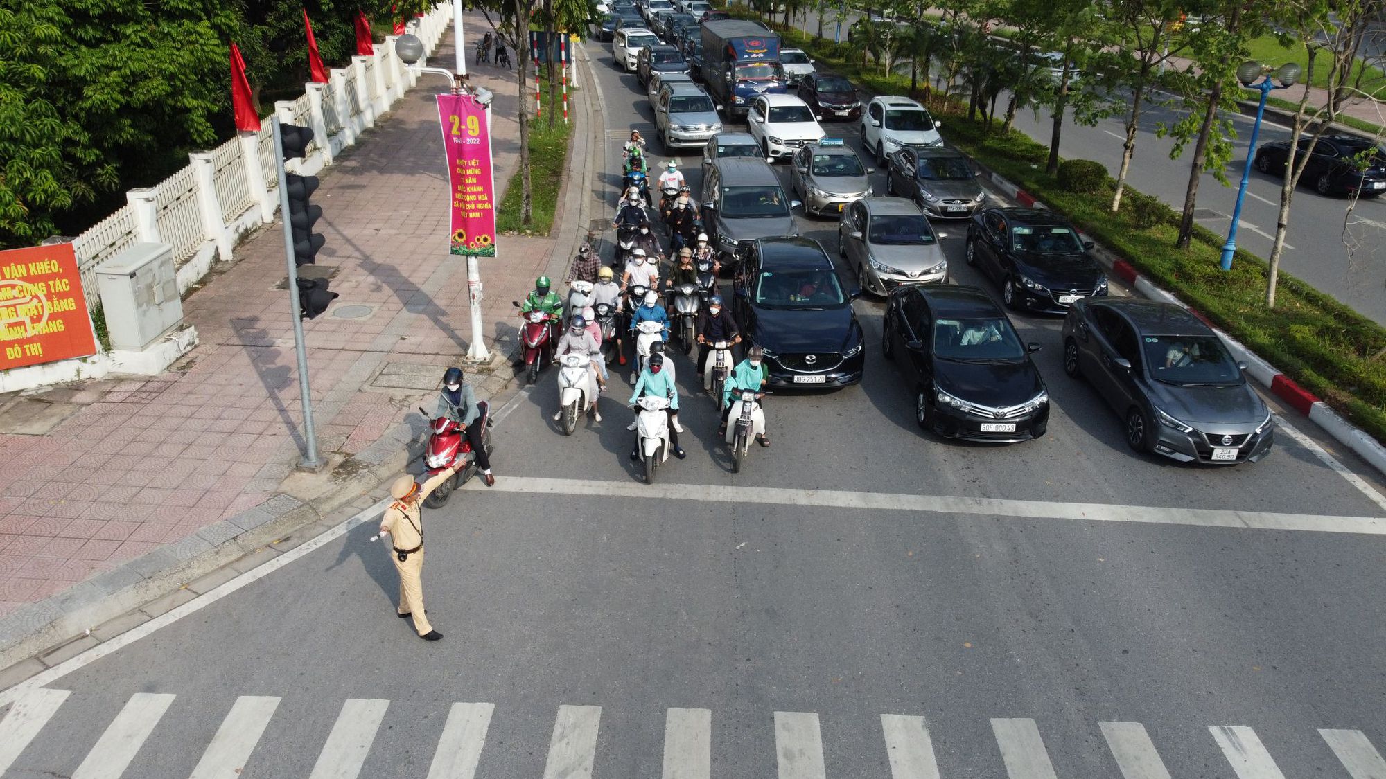 Lực lượng CSGT phối hợp căng mình hướng dẫn phương tiện về Hà Nội sau nghỉ lễ 2/9